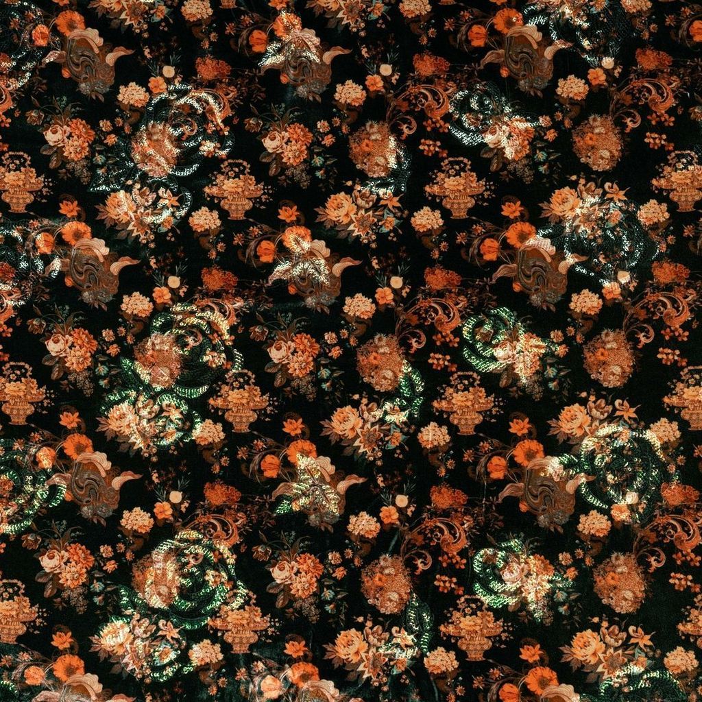 | Fabric Name | Green Velvet Fabric with Embroidered Floral Designs and Sequins |