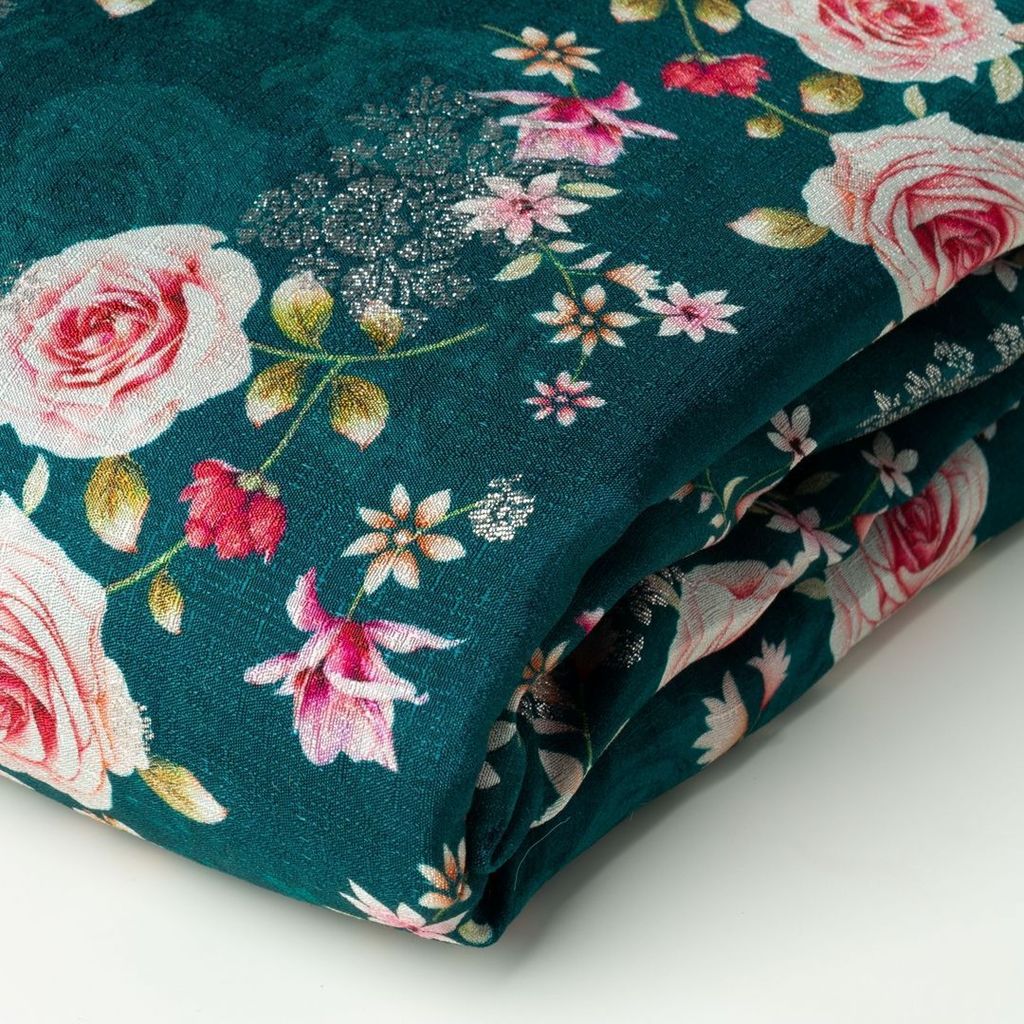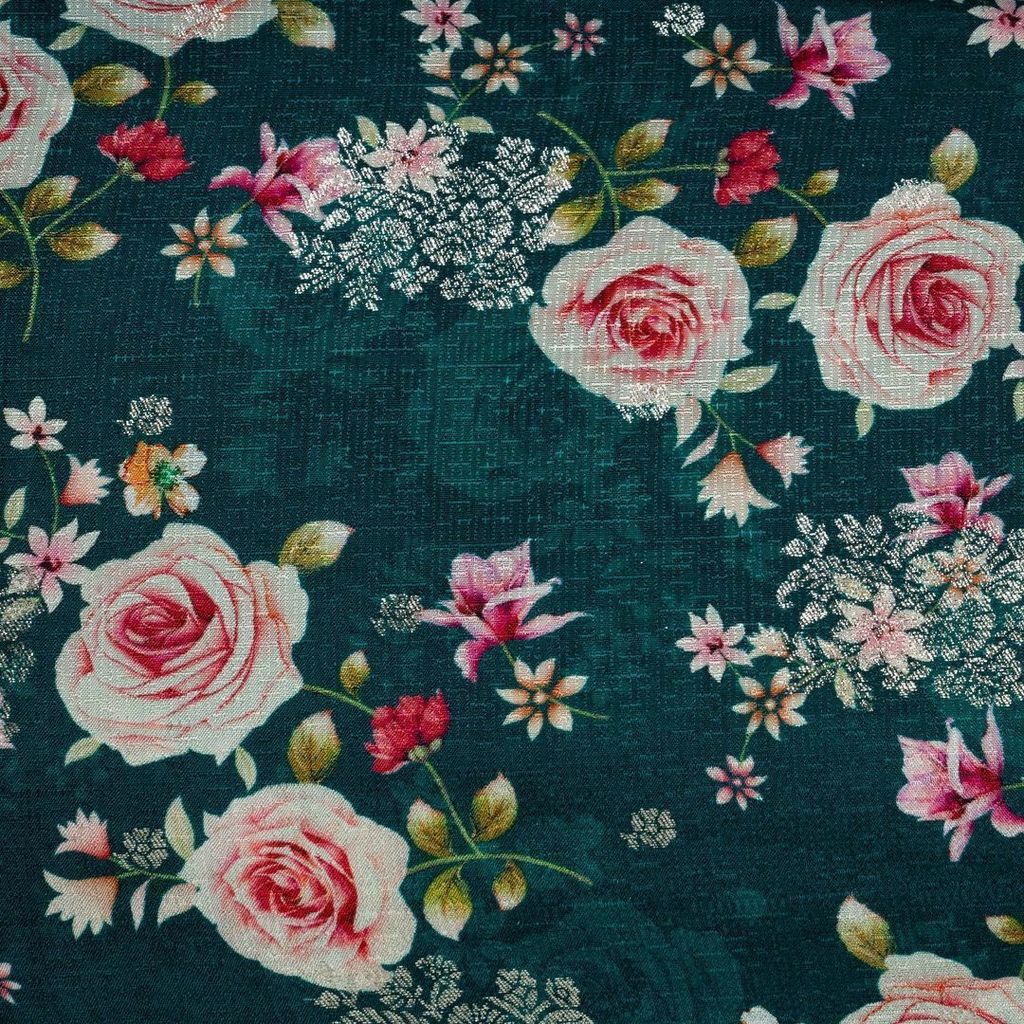 | Fabric Name | Green Viscose Dola Silk Jacquard Fabrics with Rose Prints |