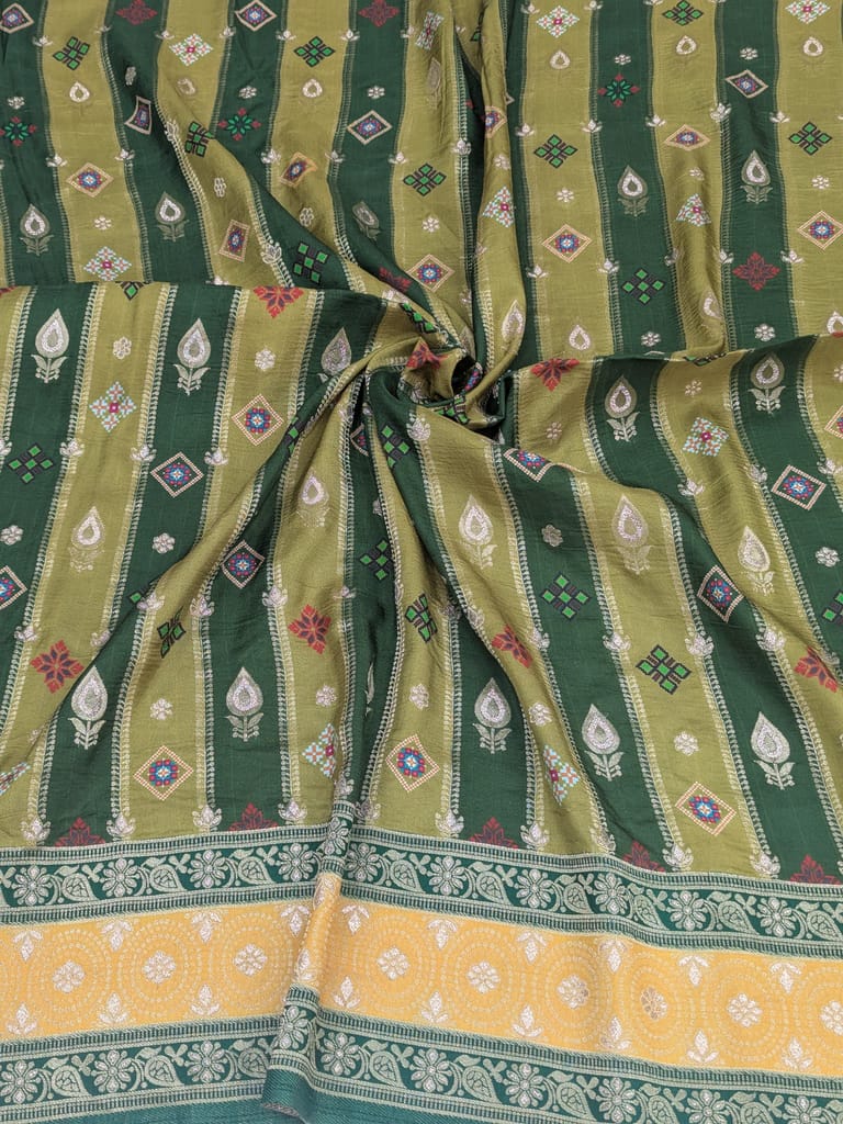 | Fabric Name | Green Jacquard Positioned Print On Dola Silk |