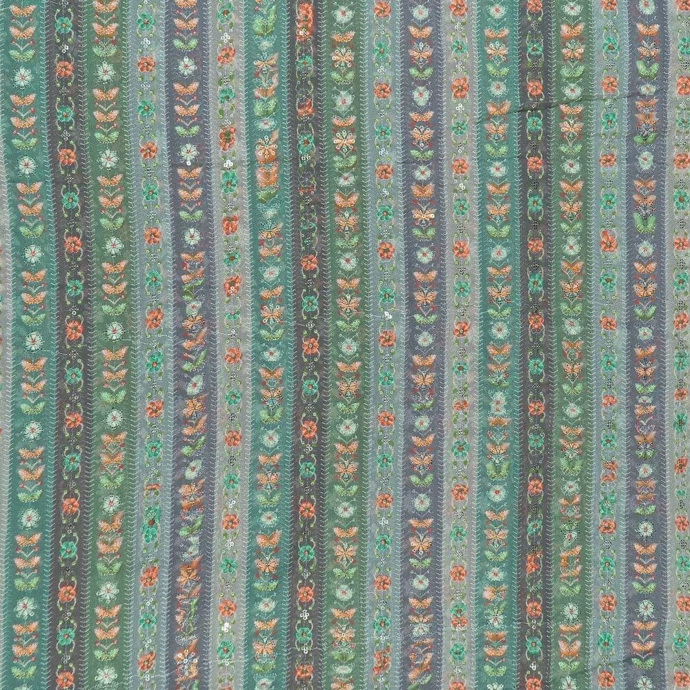 Georgette fabrics are the staple fabric of every wardrobe. Make a quick addition to your collection with this majestic georgette fabric. The floral pattern runs in a horizontal line spread all over the fabric with delicate thread embroidery. The versatile fabric is nothing but a symbol of sophistication and royalty. The durable fabric is soaked in shades of pink, red, green, brown, and purple. The lightweight designer fabric can be transformed into any ensemble of your choice. Pair your outfit with oxidised jewellery and juttis and you are ready for any occasion.SKU:100225070