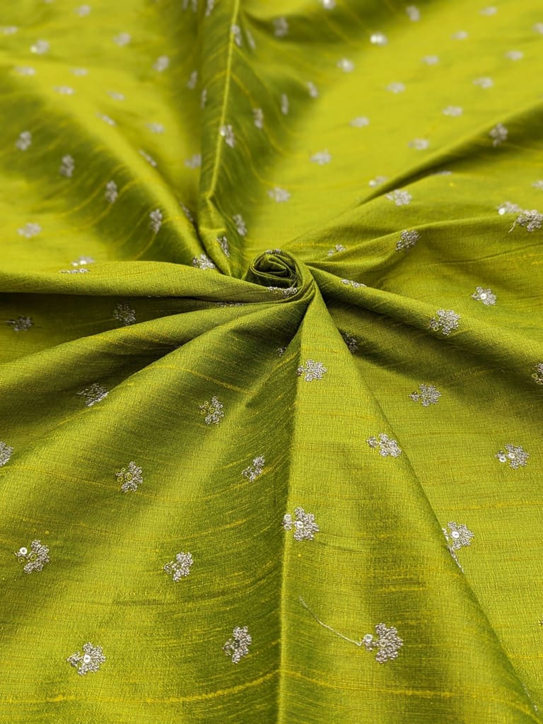 | Fabric Name | Green Raw Silk Fabric With Zari Work Butti |