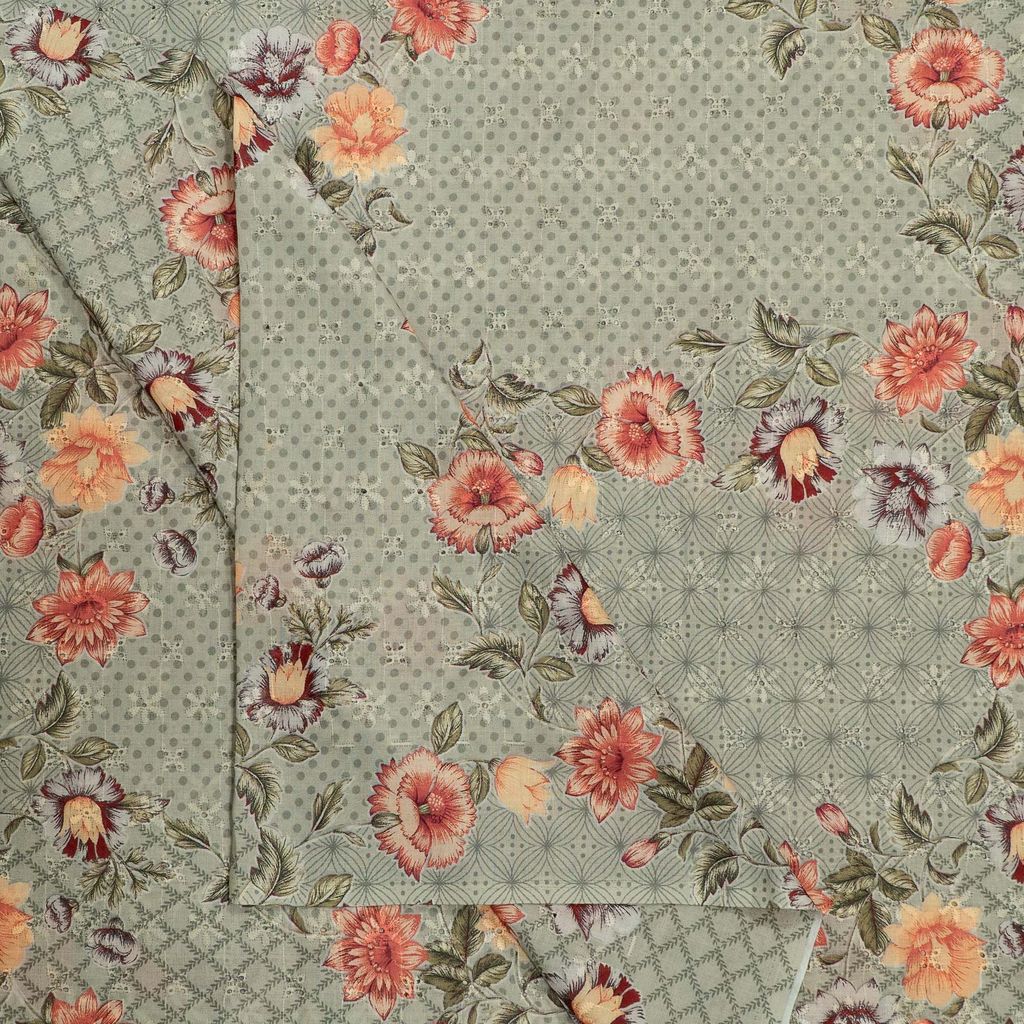 | Fabric Name | Grey Color Cotton Chikan Print with Embroidered Fabric |