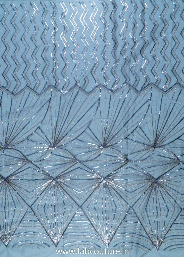 This organza fabric with golden sequin booti over the length of the fabric and multi-colour thread and sequins border in the ghera is perfect for a Abhinav Mishra style lehenga or an anarkali. SKU: 100212750