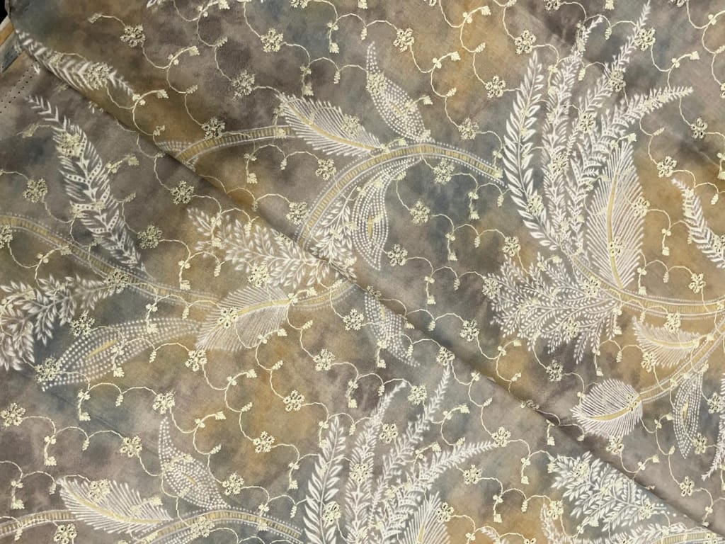 | Fabric Name | Grey Floral Cotton Hakoba Chikan Fabric |