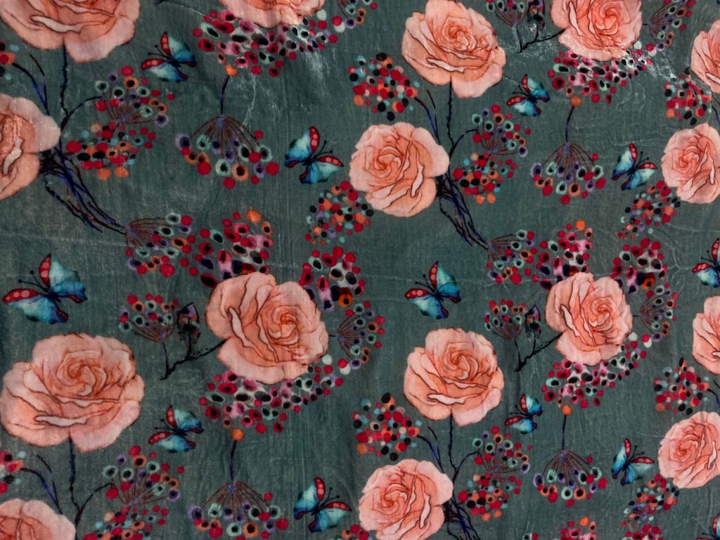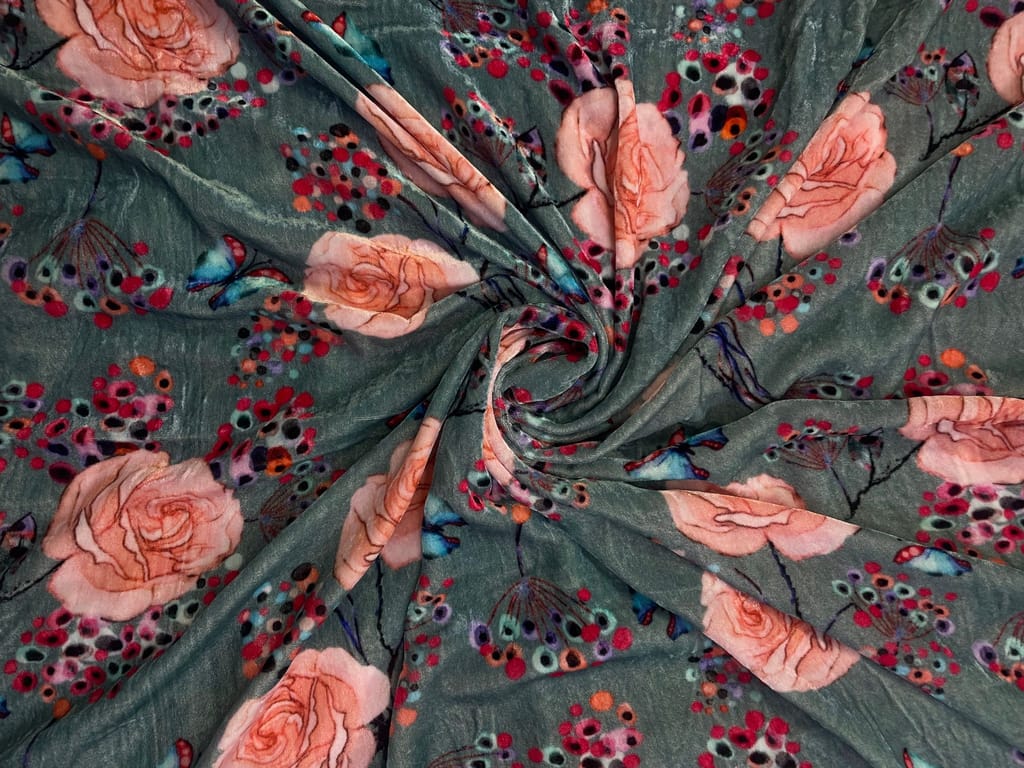 | Fabric Name | Grey Floral Pure Velvet Fabric |