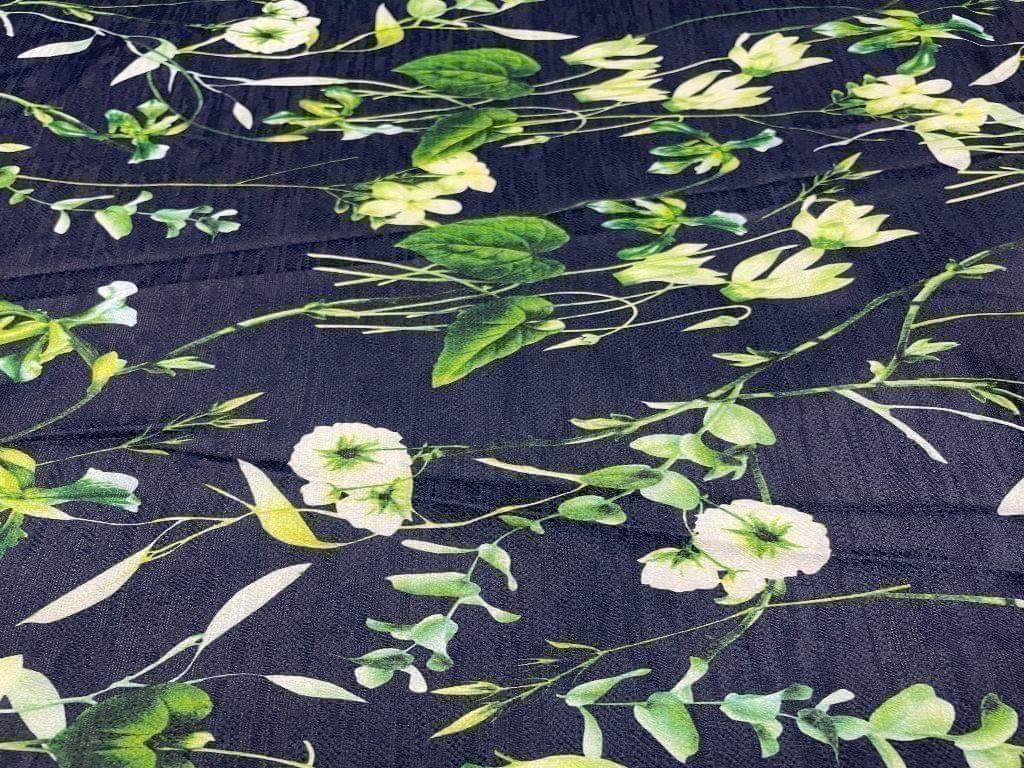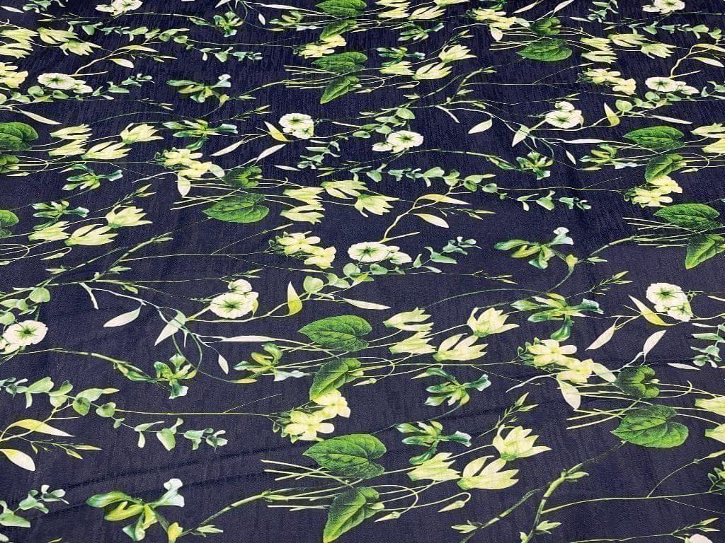 Imported Denim Navy Blue Floral Width 56 Inch / 142 Cm SKU:K0300