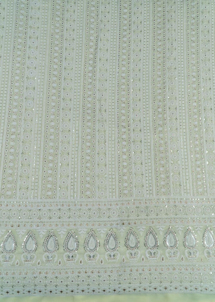Lemon colour Georgette Lakhnawi Embroidery , This georgette fabric with lakhnawi embroidery from FabCouture Lakhnawi Collection has thread embroidery and a touch of sequins and zari which makes it all the more elegant and rich. SKU:10022244 POLY GEO EMB D.NO 1340