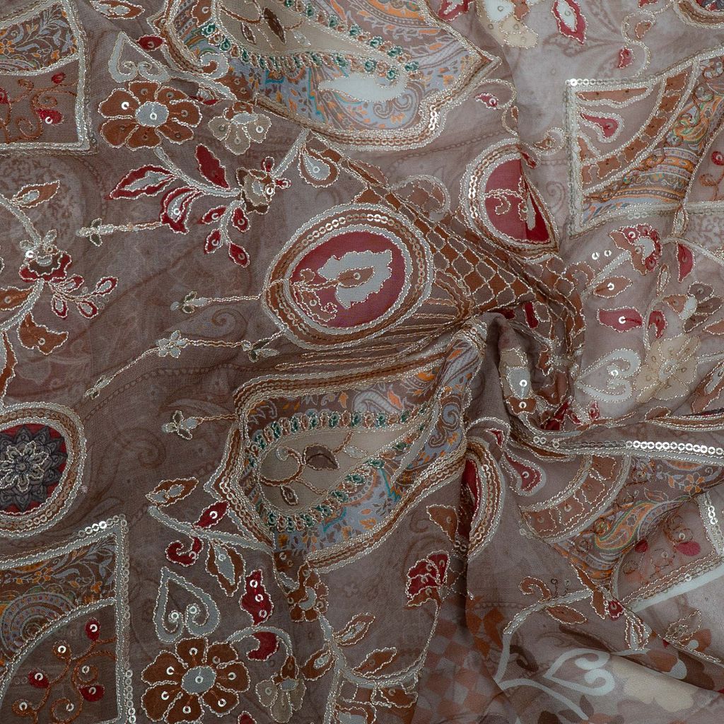 | Fabric Name | Light Brown Color Georgette Embroidered Fabric |