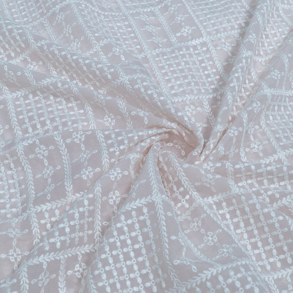 | Fabric Name | Light Peach Color Chinon Chiffon Embroidered Fabric |