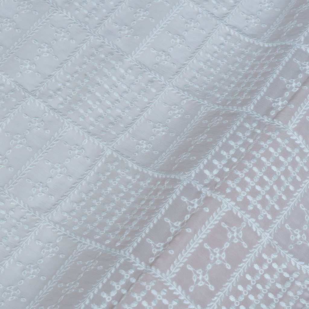 Chinon Chiffon Embroidered Fabric is a lightweight and elegant textile known for its soft feel and graceful flow, making it an ideal choice for stylish and versatile garments. The fabric offers a smooth texture with a fluid drape that enhances the overall appeal of any outfit.