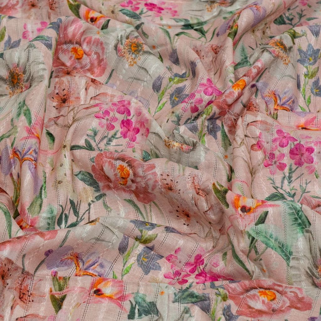 | Fabric Name | Light Pink Color Cotton Leno Floral Digital Printed Fabric |