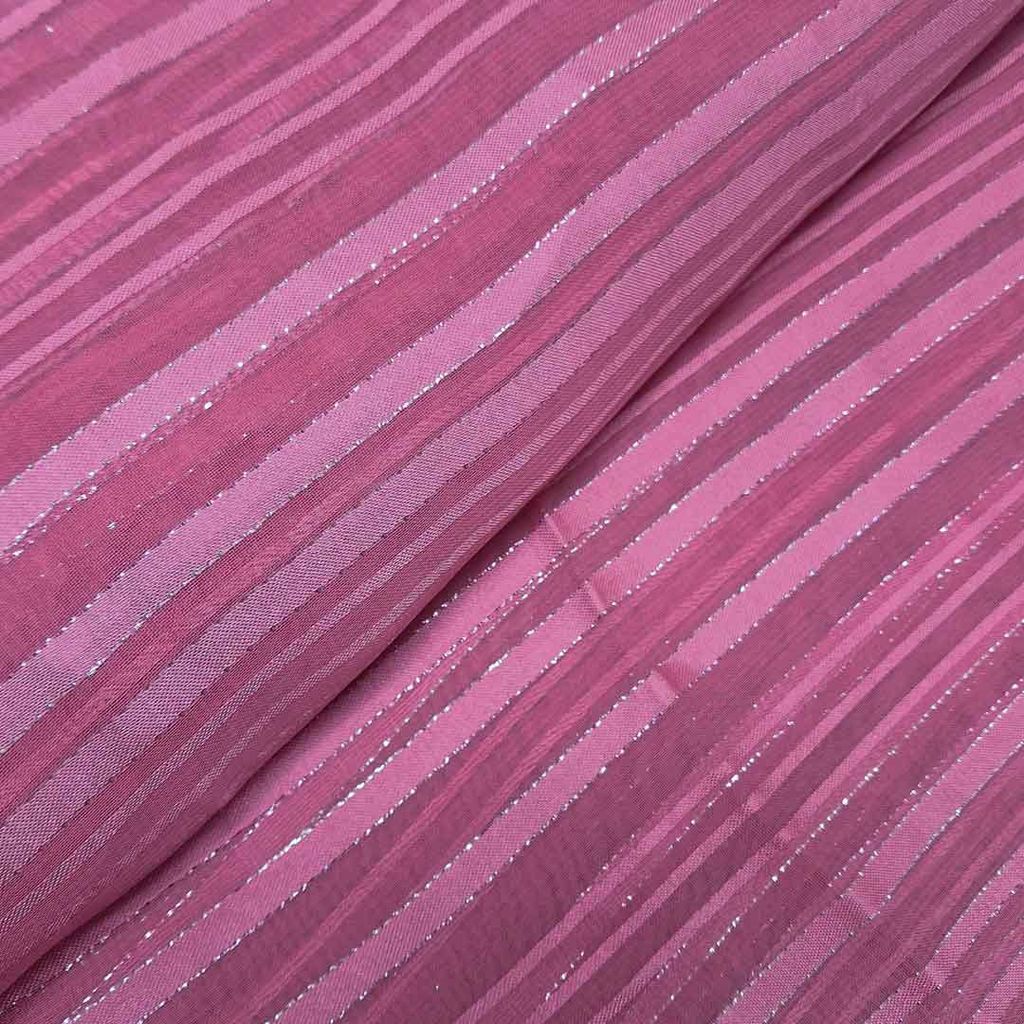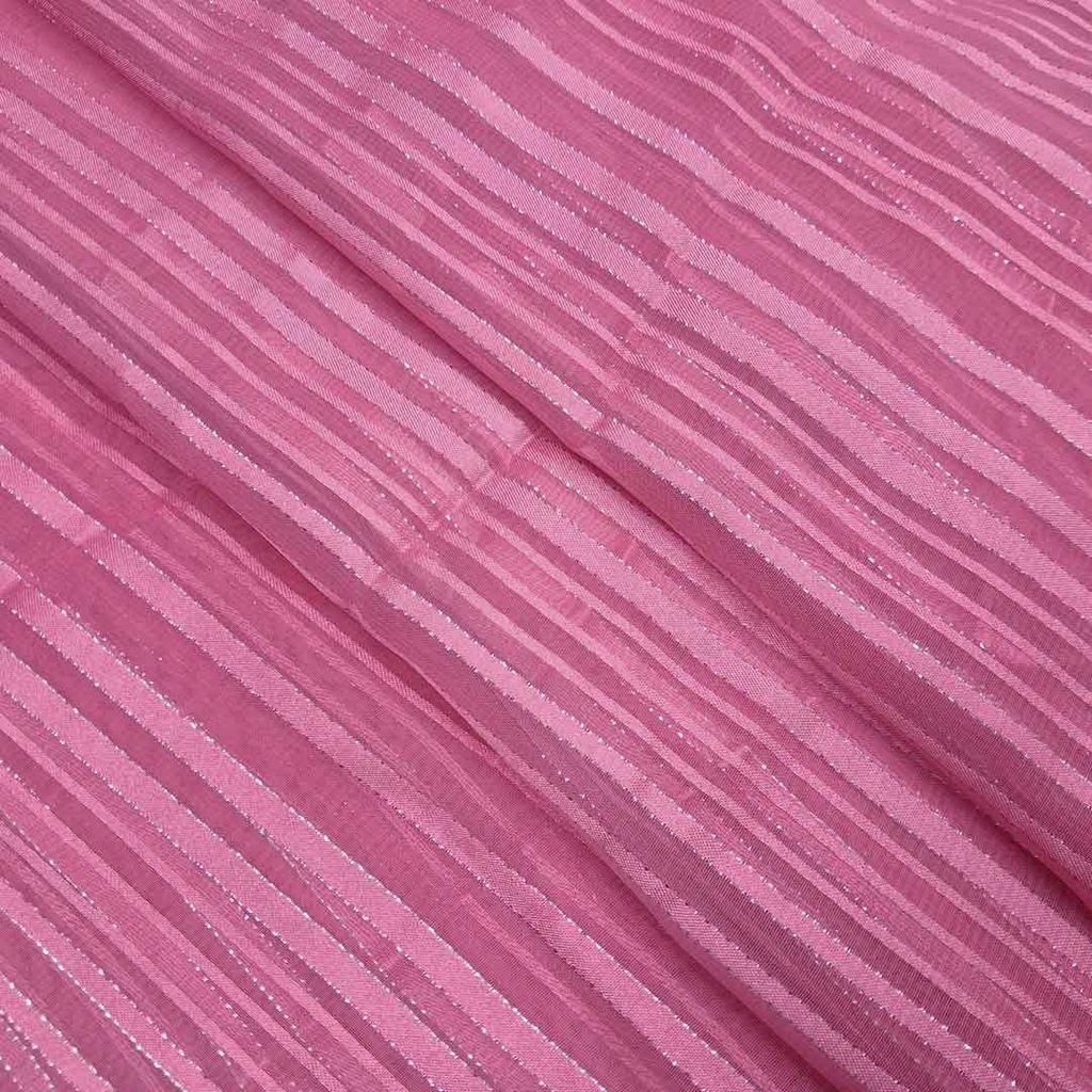 This lightweight and breathable Light Pink Stripes Printed Georgette Fabric is perfect for making beautiful blouses, skirts, and dresses. With a comfortable texture, the fabric is wrinkle-resistant and has a great draping quality. SKU- GE101D
