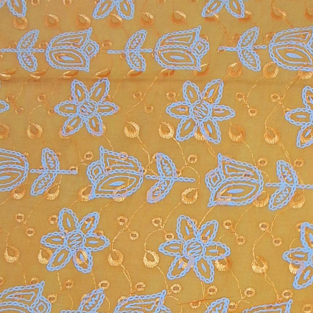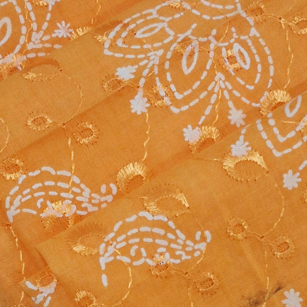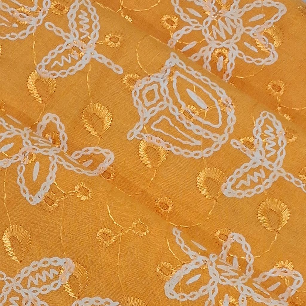 | Fabric Name | Mango Yellow Cotton Chikan Fabric with White Tulip & Daisy Embroidery |
