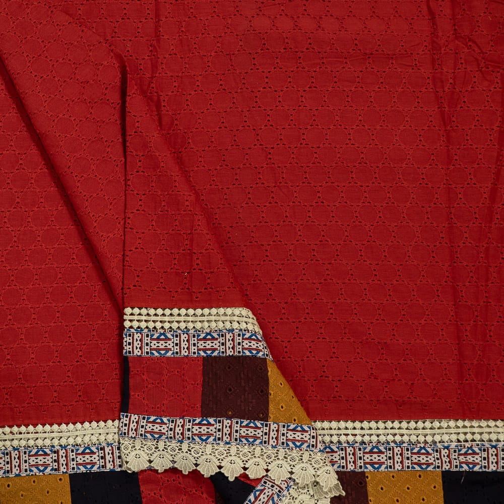 | Fabric Name | Maroon Color Cotton Chikan Embroidered Fabric |