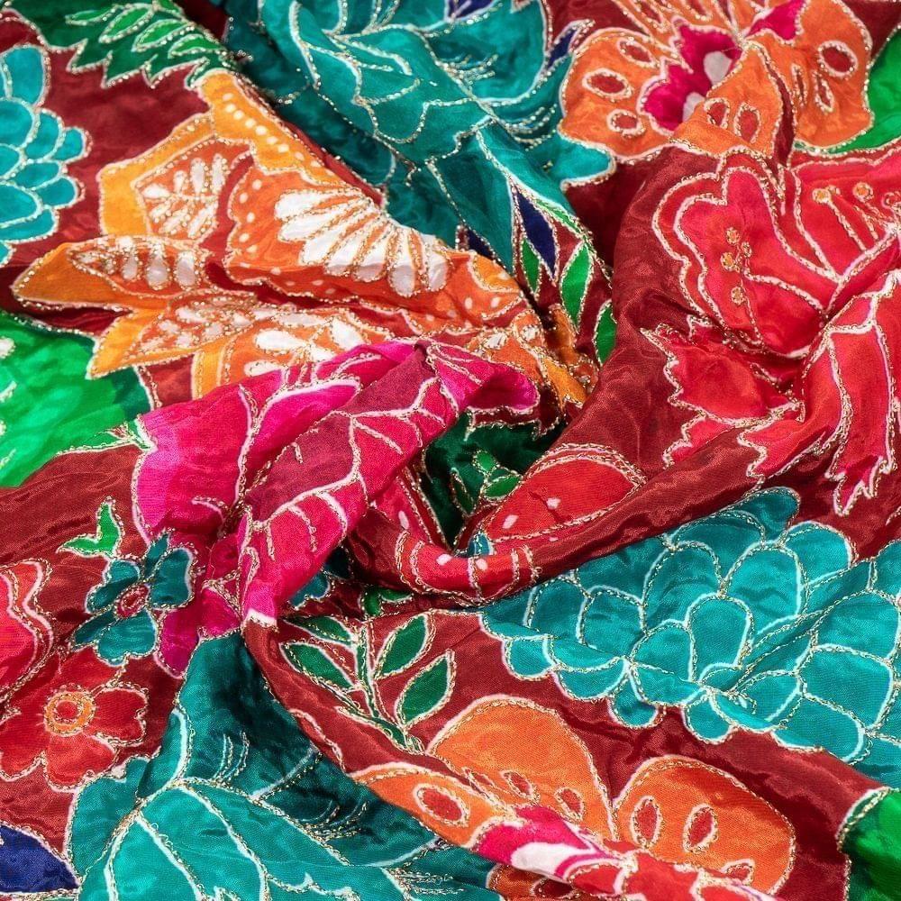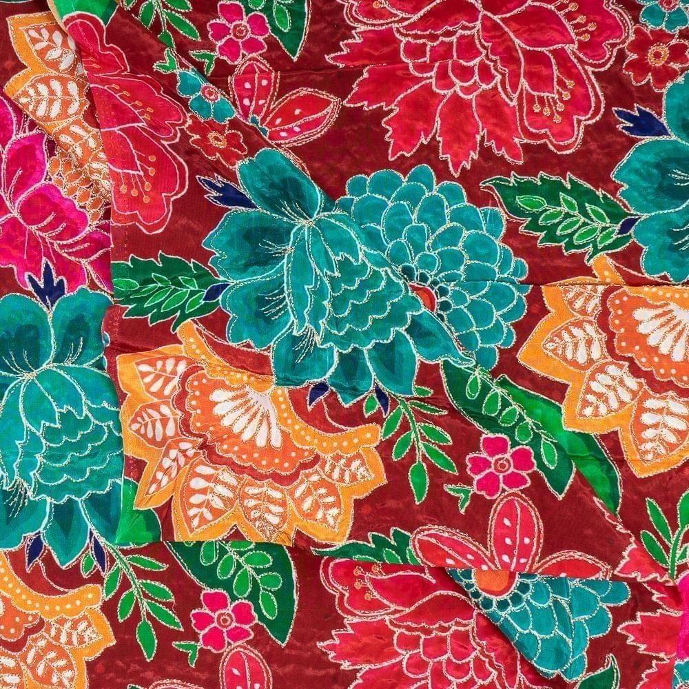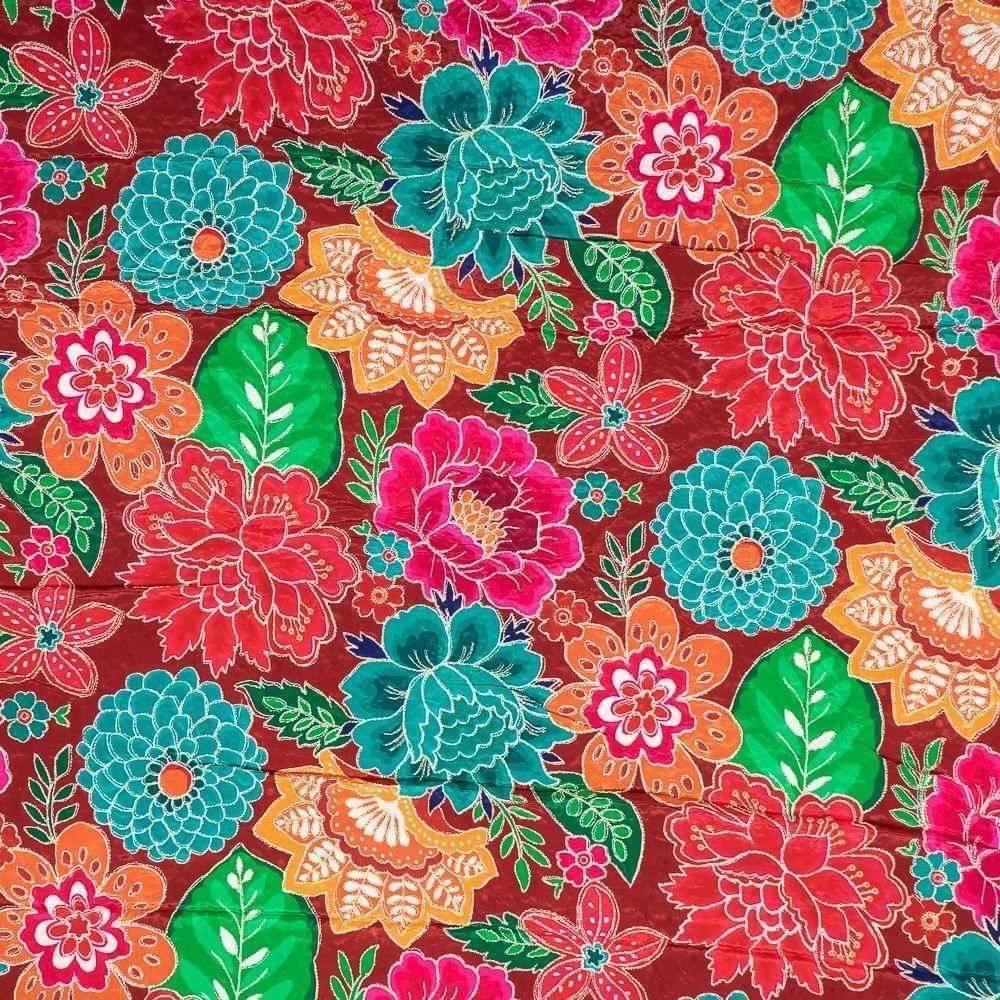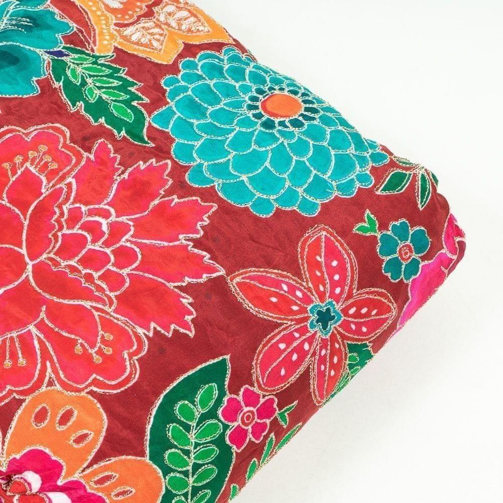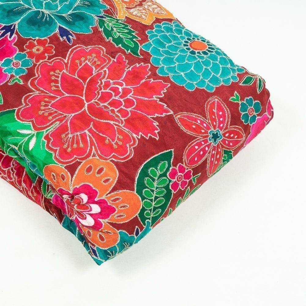 | Fabric Name | Maroon Color Viscose Crepe Print with Embroidered Fabric |