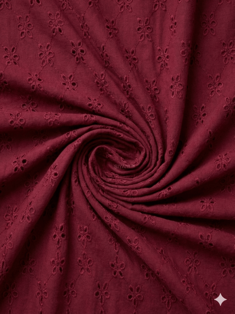 Discover the enchanting beauty of our Chikan Embroidery Fabric. Meticulously crafted with intricate needlework, this fabric showcases delicate designs. Perfect for creating stunning traditional attire or adding elegance to contemporary fashion. Experience the timeless allure of Chikan embroidery and elevate your creations to new heights with this exquisite fabric.Cotton chickan can also be used as embellishments on cushion covers and for home decor. Chickan on cotton base fabric is durable and strong and does not require separate precautionary measures. SKU:Dd10 This Cotton Schiffli Embroidered Fabric from FabCouture showcases intricate Chikankari-inspired embroidery, making it ideal for ethnic wear, kurtis, festive blouses, or elegant dresses. Perfect for designers and boutique creators looking for lightweight and stylish fabric.