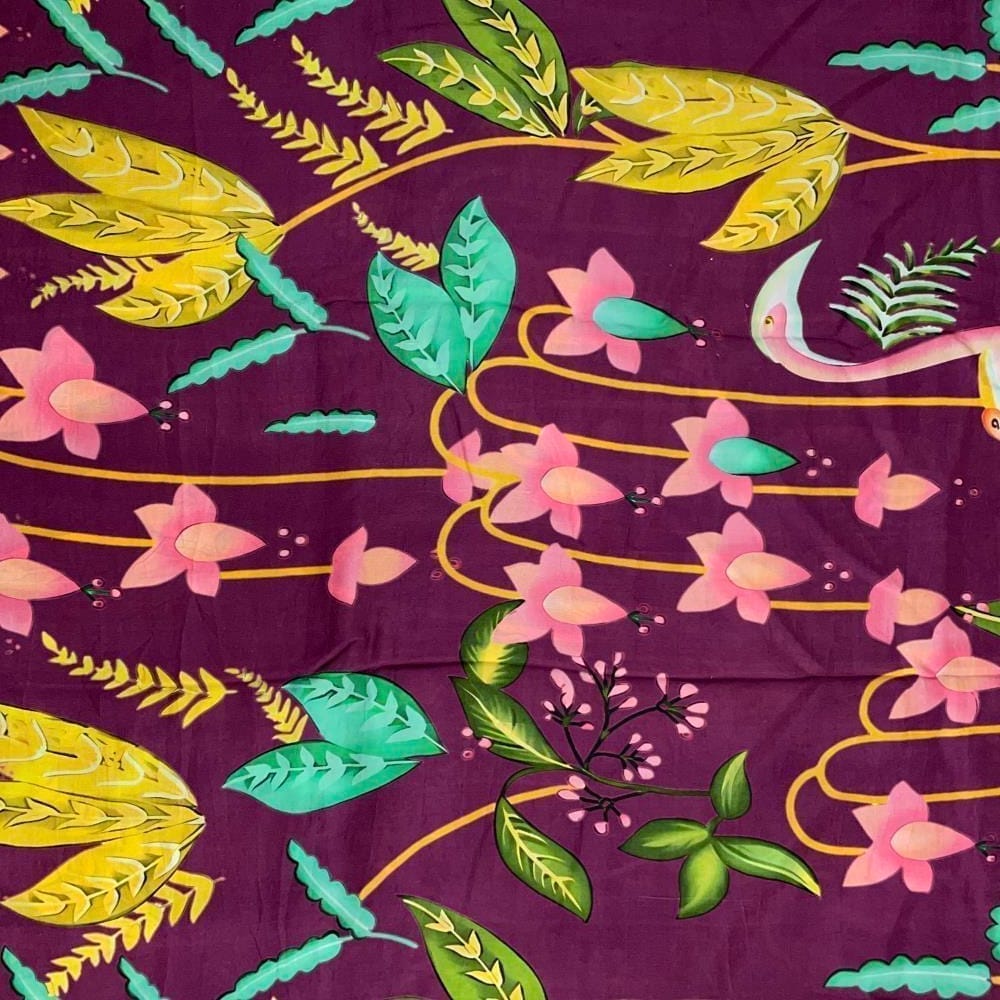| Fabric Name | Mauve Purple Color Floral Pure Dupion Silk Print Fabric |