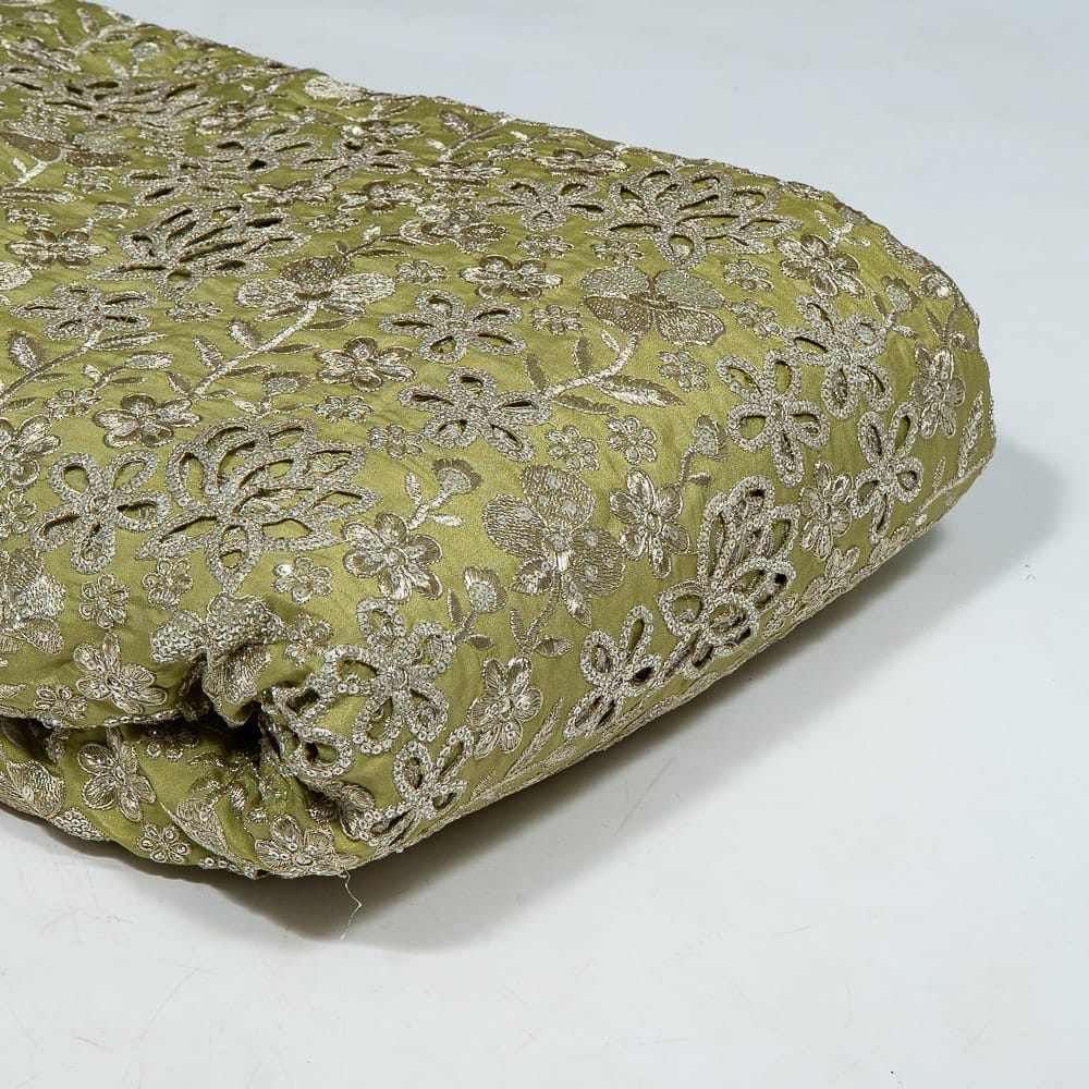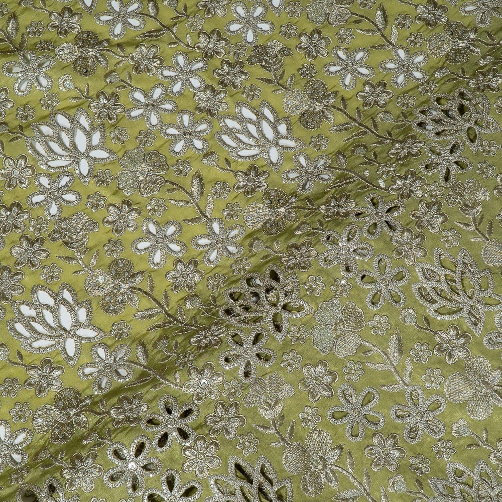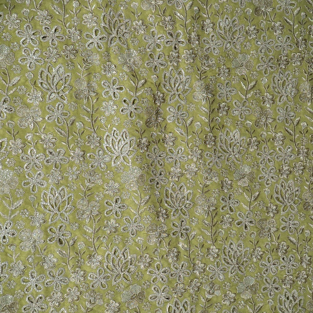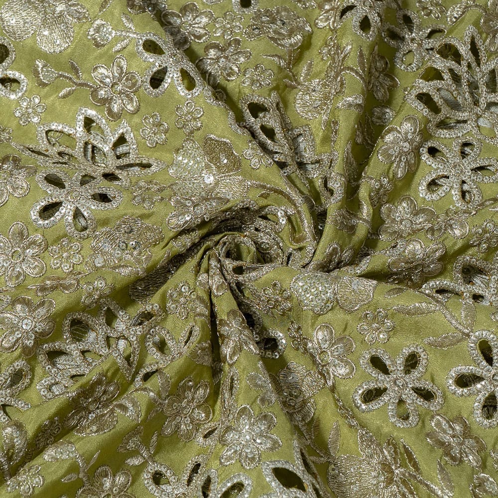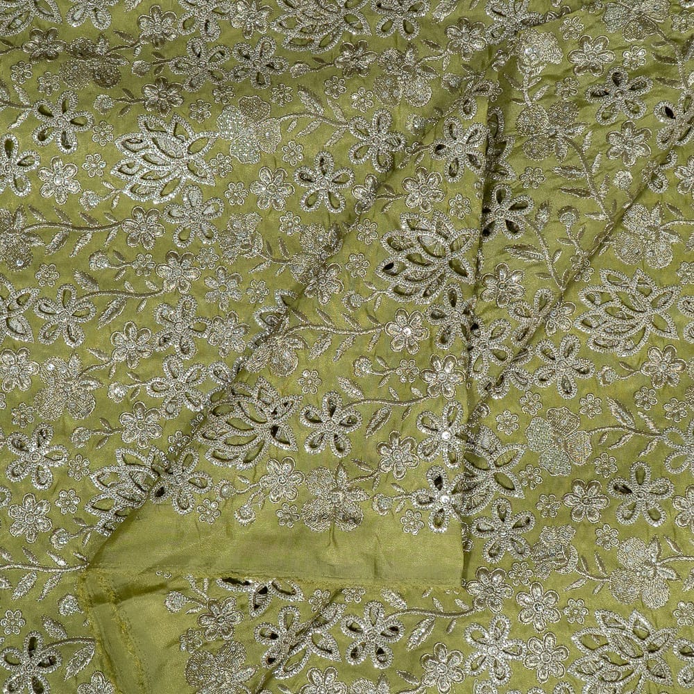 | Fabric Name | Mehendi Green Color Tissue Crepe Cutwork Fabric |