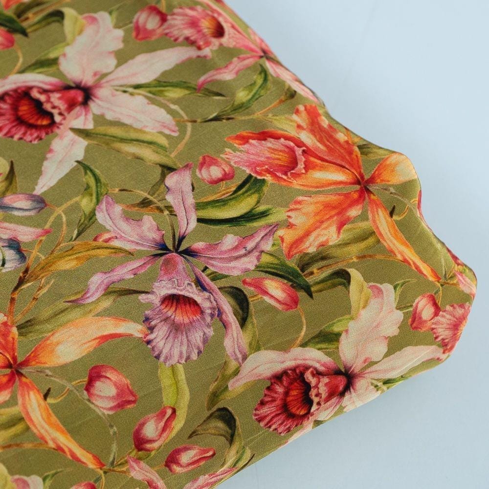 | Fabric Name | Mehndi Green Color Crepe Printed Fabric |