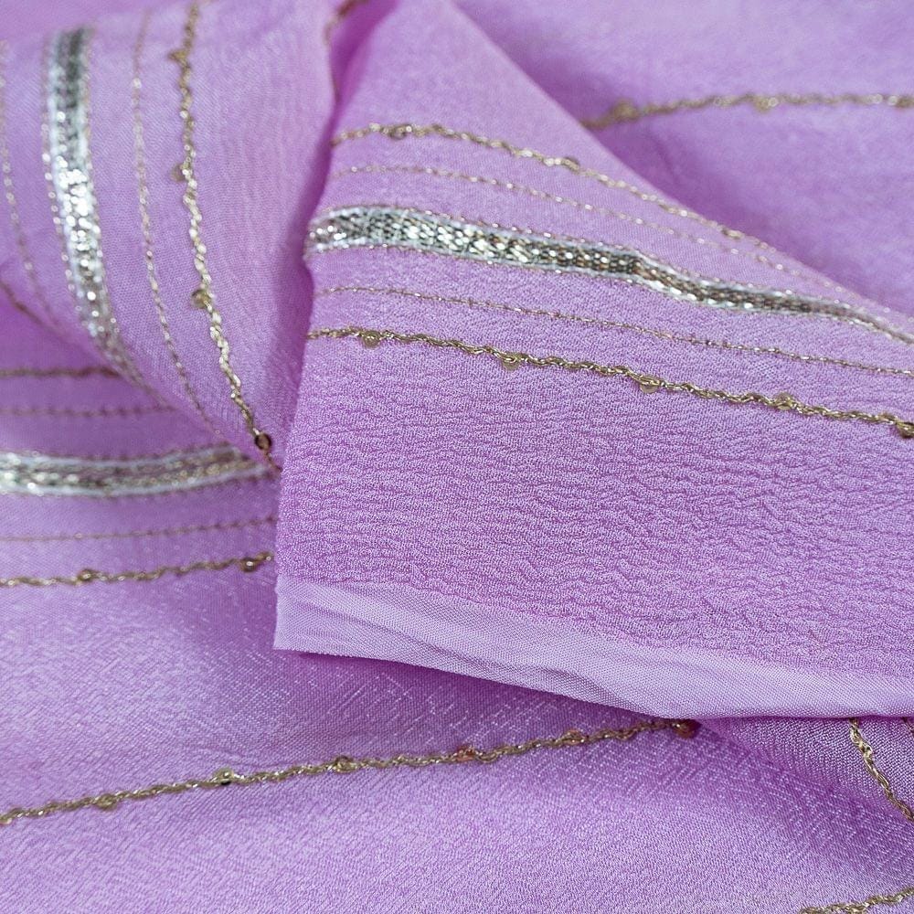Move colour Chinon chiffon Gota Embroidery With Light Golden Gota Sequin Booti Embroidery, Can be Used for making Dupattas, lehengas-choli, blouses, skirts, shirts, tops this fabric is fabulous for all, it s a dyeable fabirc. Shade no : 28, SKU:10022935A