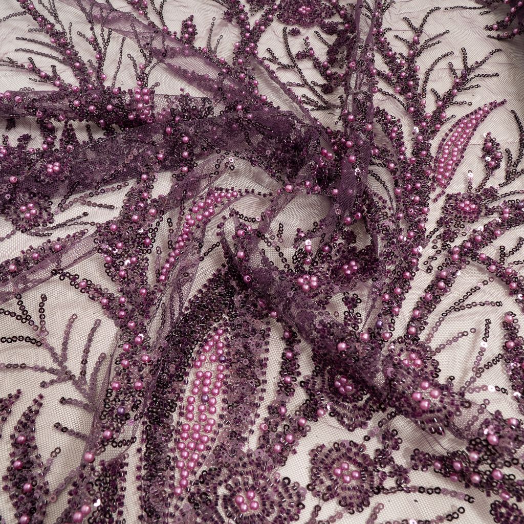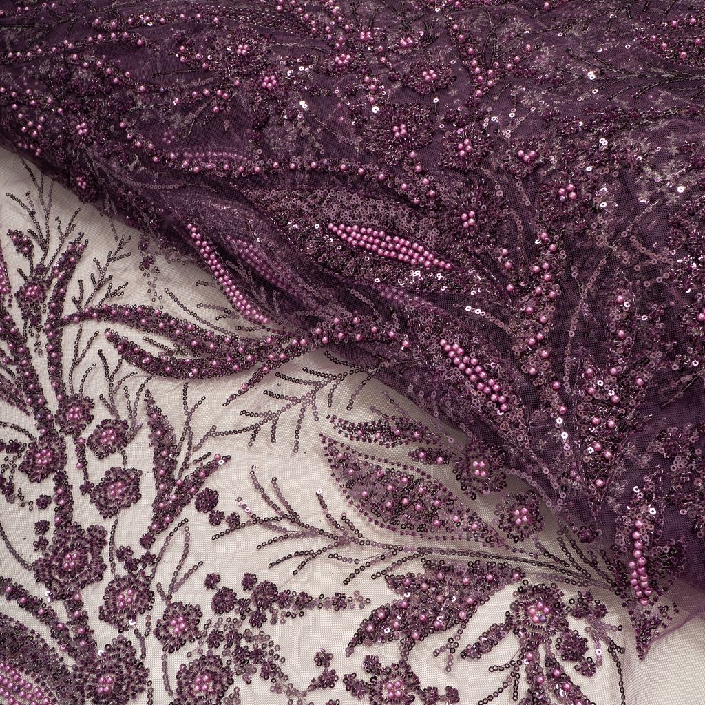 Make a striking statement with this luxurious Net Embroidered Fabric adorned with beads and sequins. Crafted on a fine net base, the fabric features densely scattered bead and sequin embellishments that create a rich, shimmering surface with depth and movement. The embroidery reflects light beautifully, giving the fabric a glamorous yet refined appeal. Ideal for eveningwear and occasion couture, this fabric is designed to elevate silhouettes with elegance and drama.