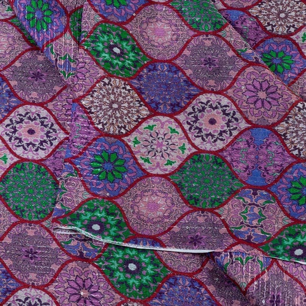 | Fabric Name | Multi Color Chinon Digital Print with Embroidery Fabric |