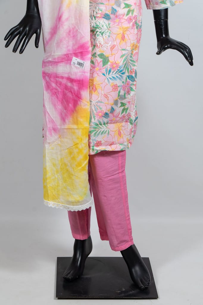 | Fabric Name | Multi Color Cotton Print with Embroidered Shirt with Pink Color Cotton Pant and Cotton Tie and Dye Dupatta |