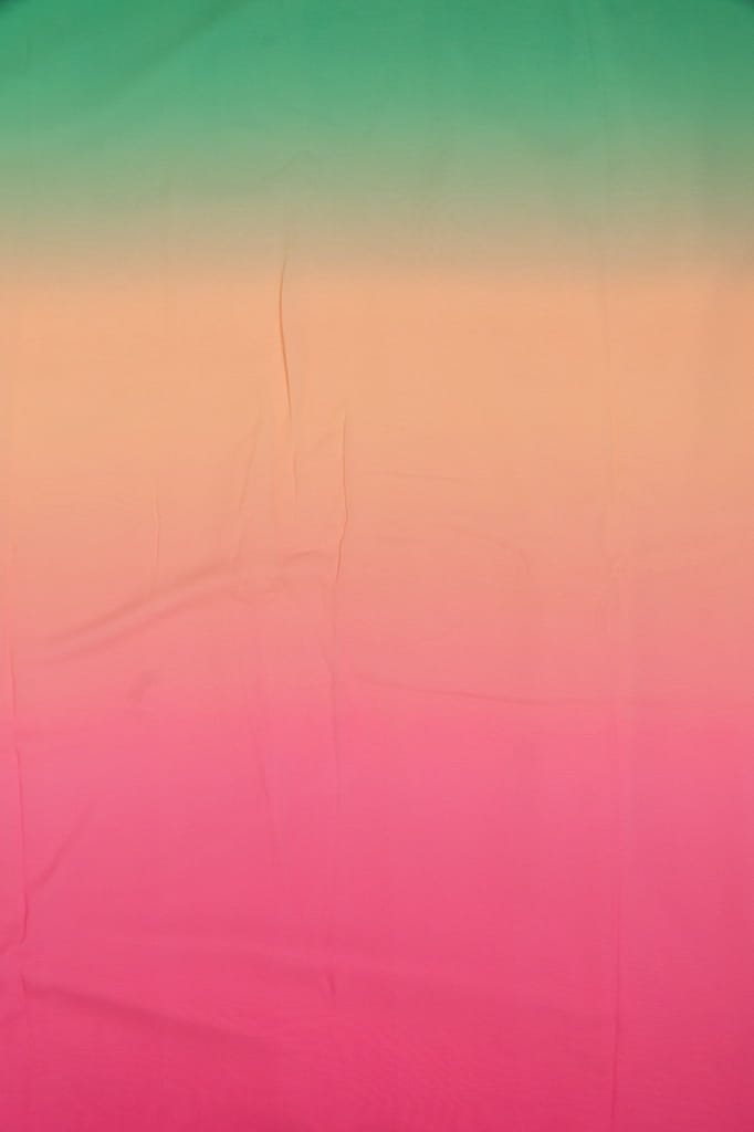 Elevate your creations with our Polyester Georgette Ombre Printed Fabric. A masterpiece of colour blending, this fabric adds depth to any design. Perfect for dresses, sarees, scarves, and drapery, it offers a luxurious touch and captivating play of colours. Unleash your creativity with our Polyester Georgette Ombre Printed Fabric.SKU:100234934A