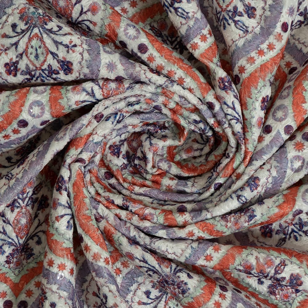 Fabric NameMulti Color Velvet Print with Embroidery Fabric