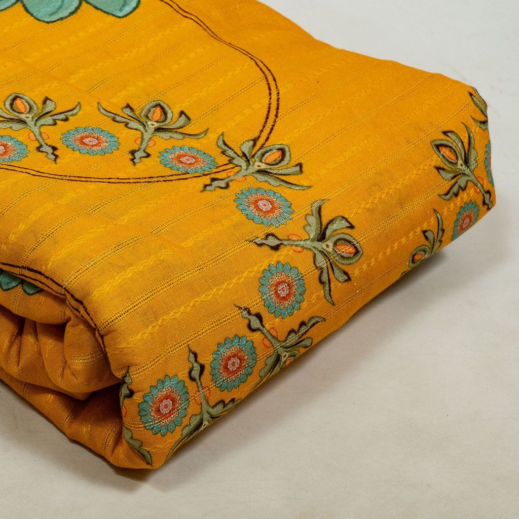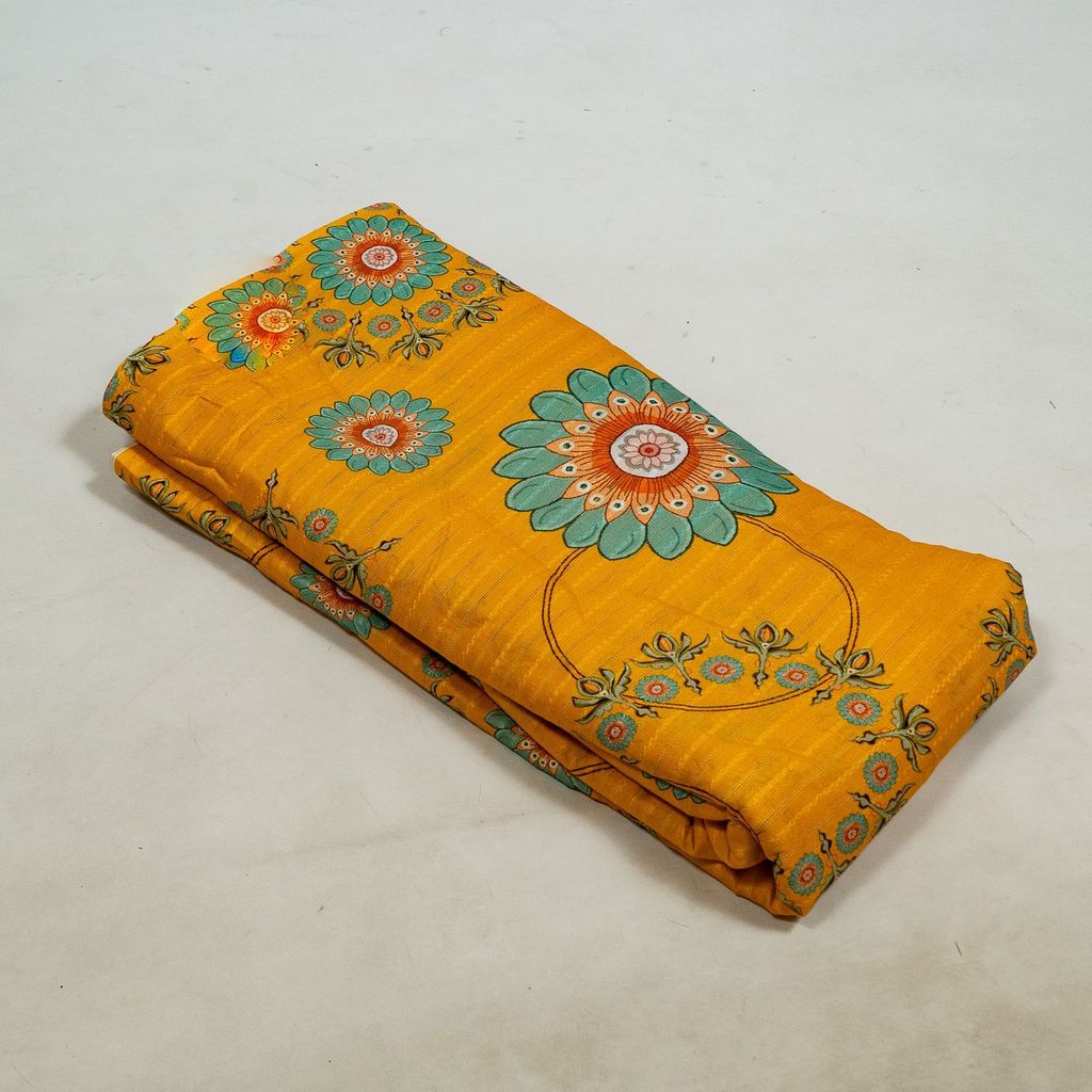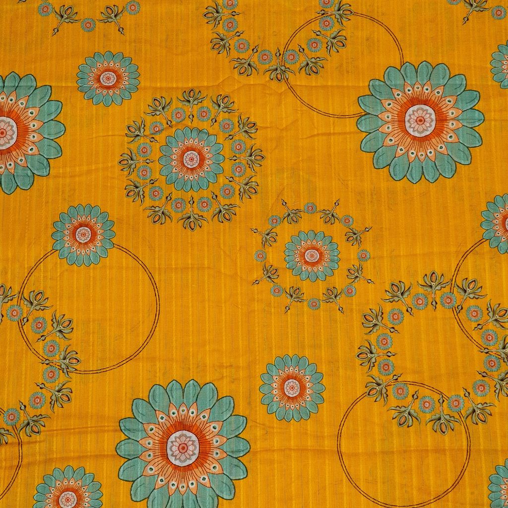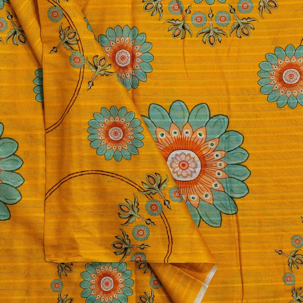 | Fabric Name | Mustard Color Cotton Leno Floral Digital Printed Fabric |