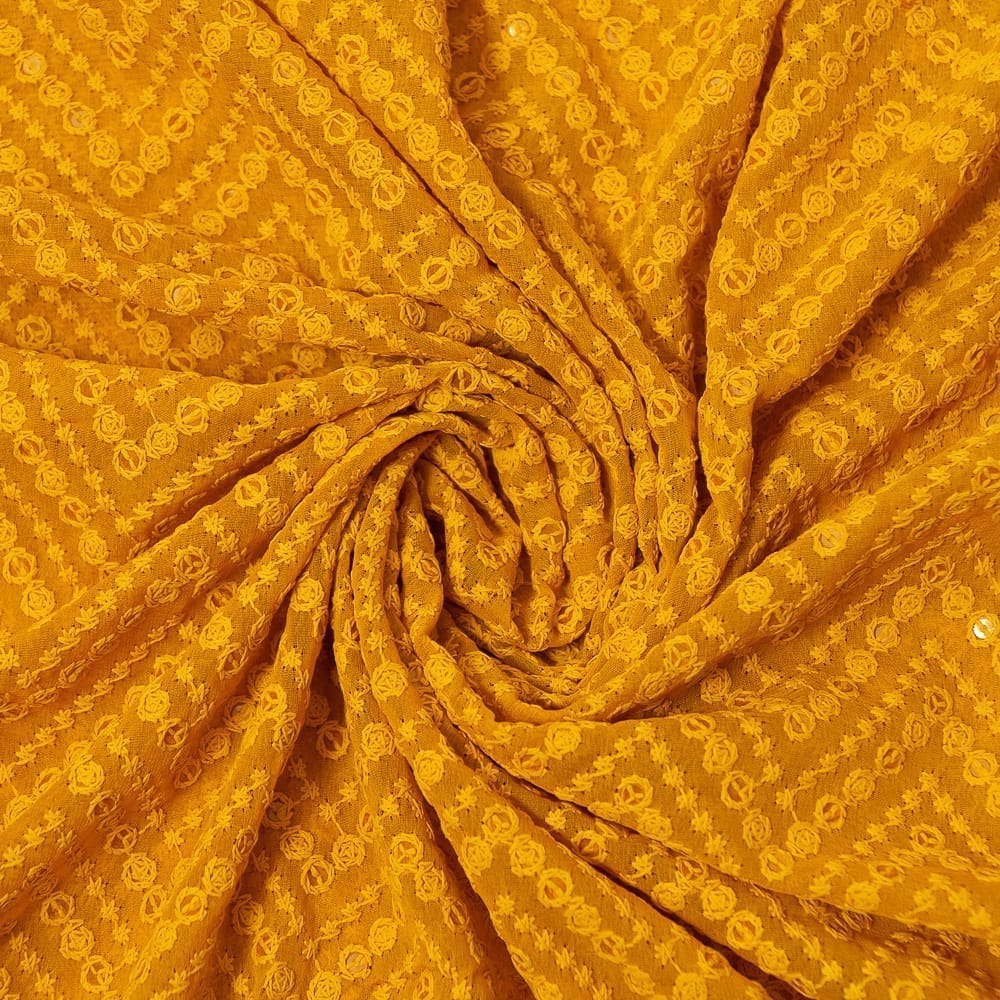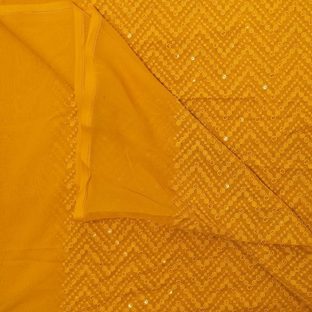 | Fabric Name | Mustard Color Georgette Chikan Embroidered Fabric |
