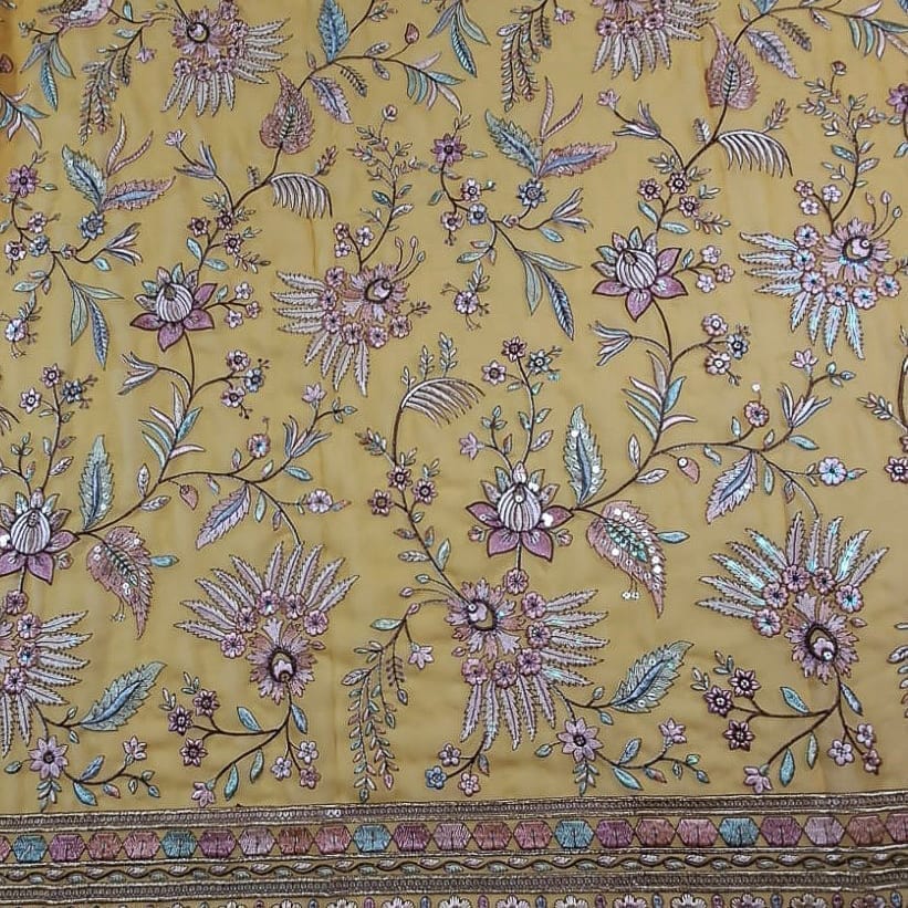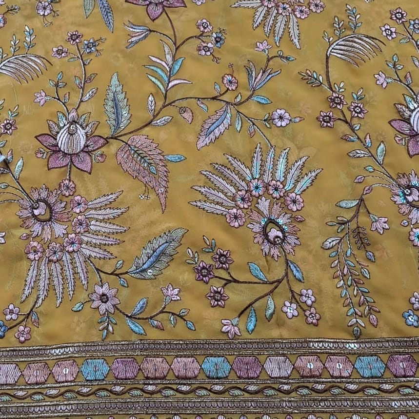 | Fabric Name | Mustard Color Georgette Embroidered Fabric |