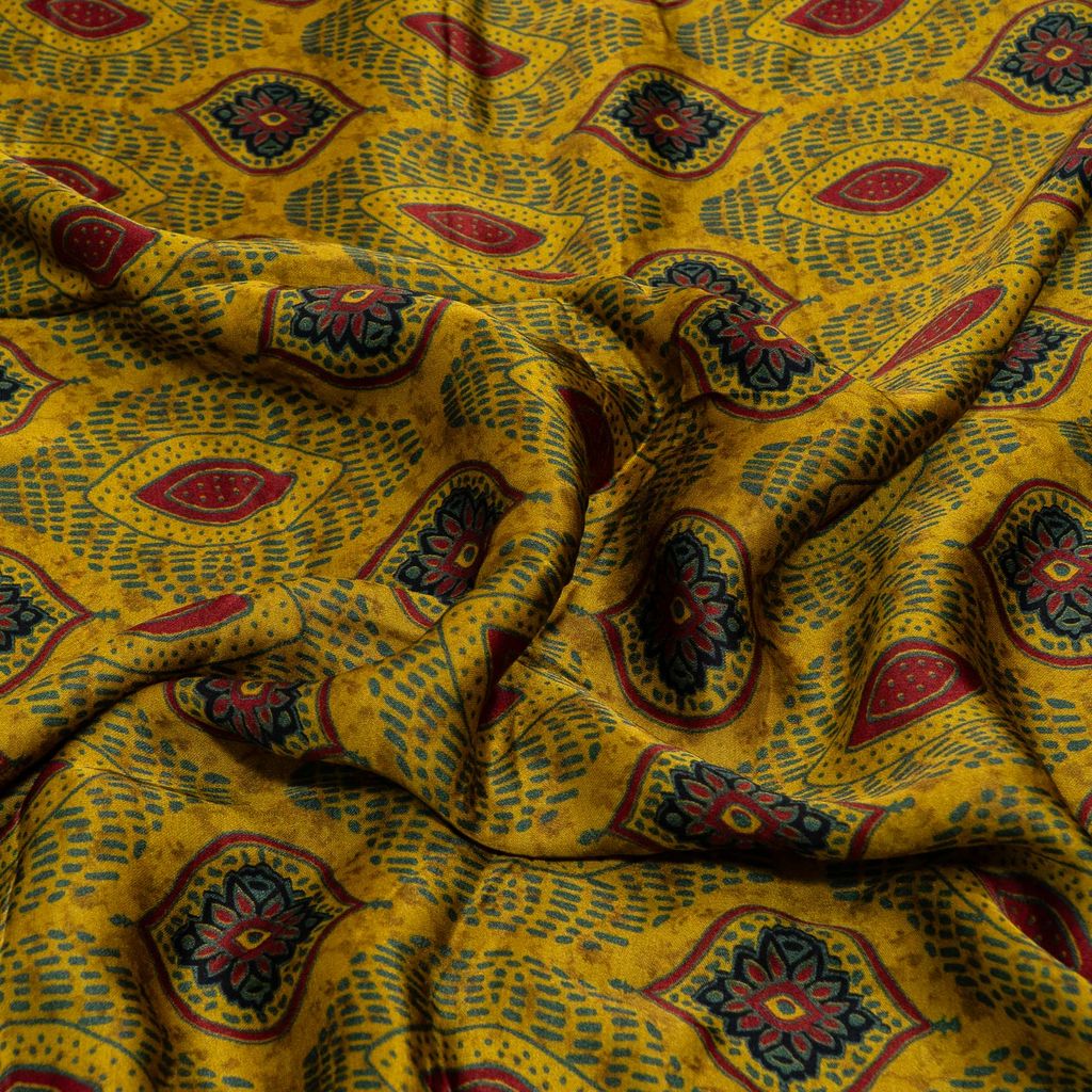 | Fabric Name | Mustard Color Modal Satin Digital Printed Fabric |