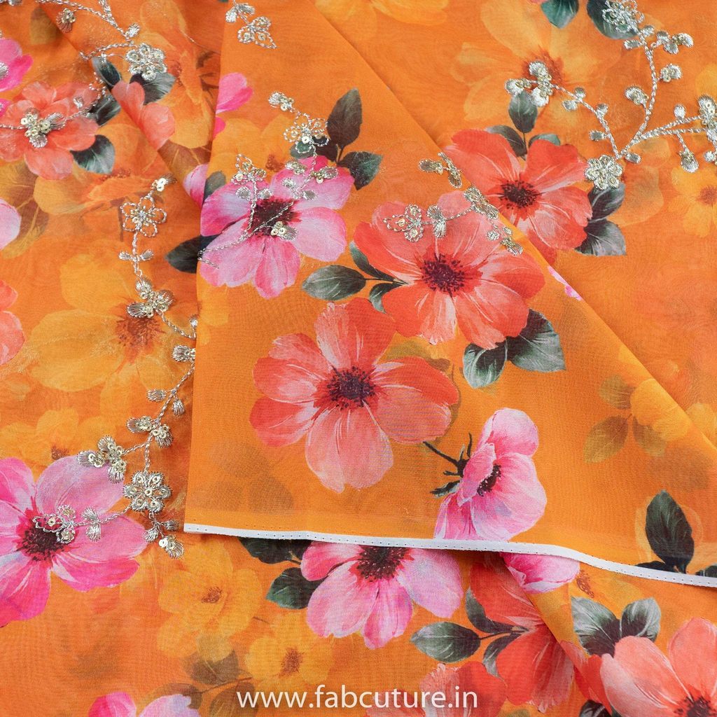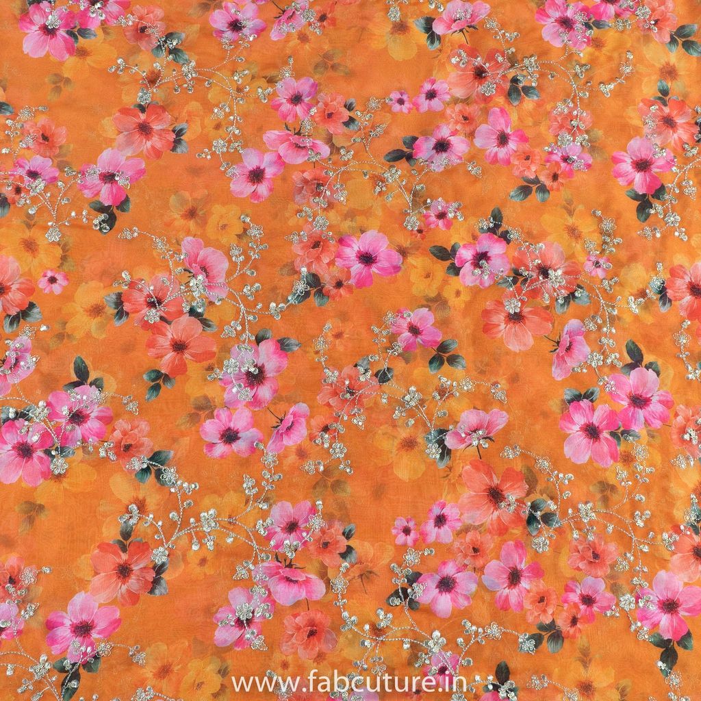 | Fabric Name | Mustard Color Tabby Silk Print With Embroidery |