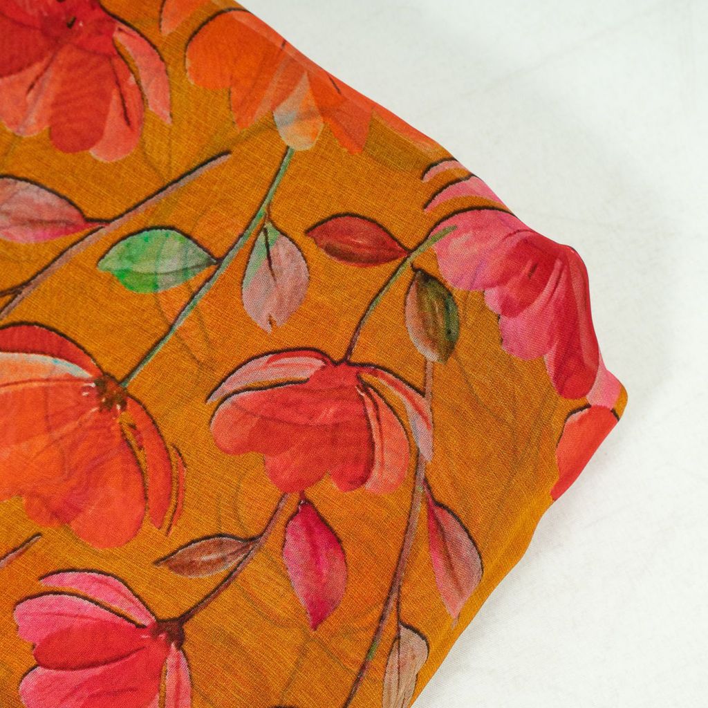 | Fabric Name | Mustard Color Viscose Organza Digital Printed Fabric |