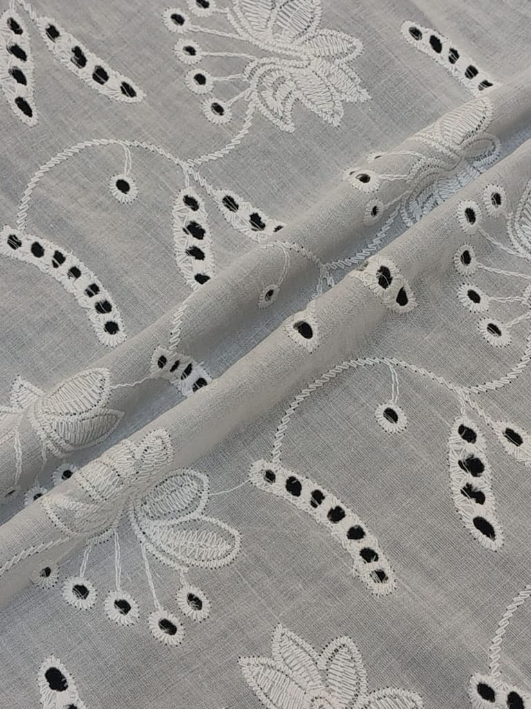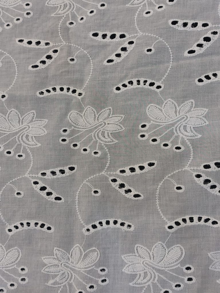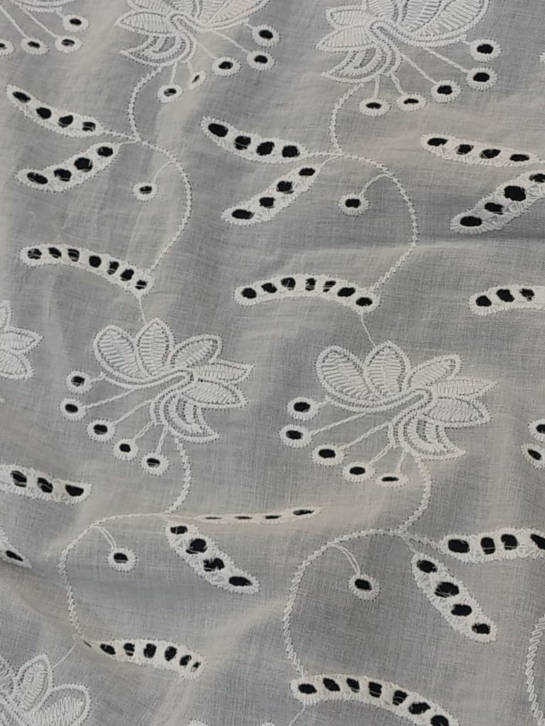 Discover the enchanting beauty of our Chikan Embroidery Fabric. Meticulously crafted with intricate needlework, this fabric showcases delicate floral motifs and geometric designs. Perfect for creating stunning traditional attire or adding elegance to contemporary fashion. Experience the timeless allure of Chikan embroidery and elevate your creations to new heights with this exquisite fabric.Cotton chickan can also be used as embellishments on cushion covers and for home decor. Chickan on cotton base fabric is durable and strong and does not require separate precautionary measures. SKU:FB04. This Cotton Schiffli Embroidered Fabric from FabCouture showcases intricate Chikankari-inspired embroidery, making it ideal for ethnic wear, kurtis, festive blouses, or elegant dresses. Perfect for designers and boutique creators looking for lightweight and stylish fabric.