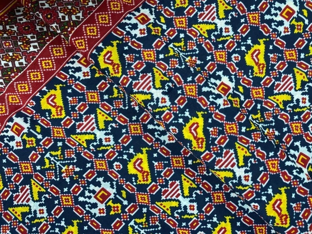 | Fabric Name | Navy Blue Abstract Upada Silk Fabric |