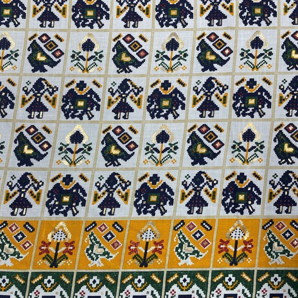 | Fabric Name | Navy Blue Color Linen Slub Foil Printed Fabric |