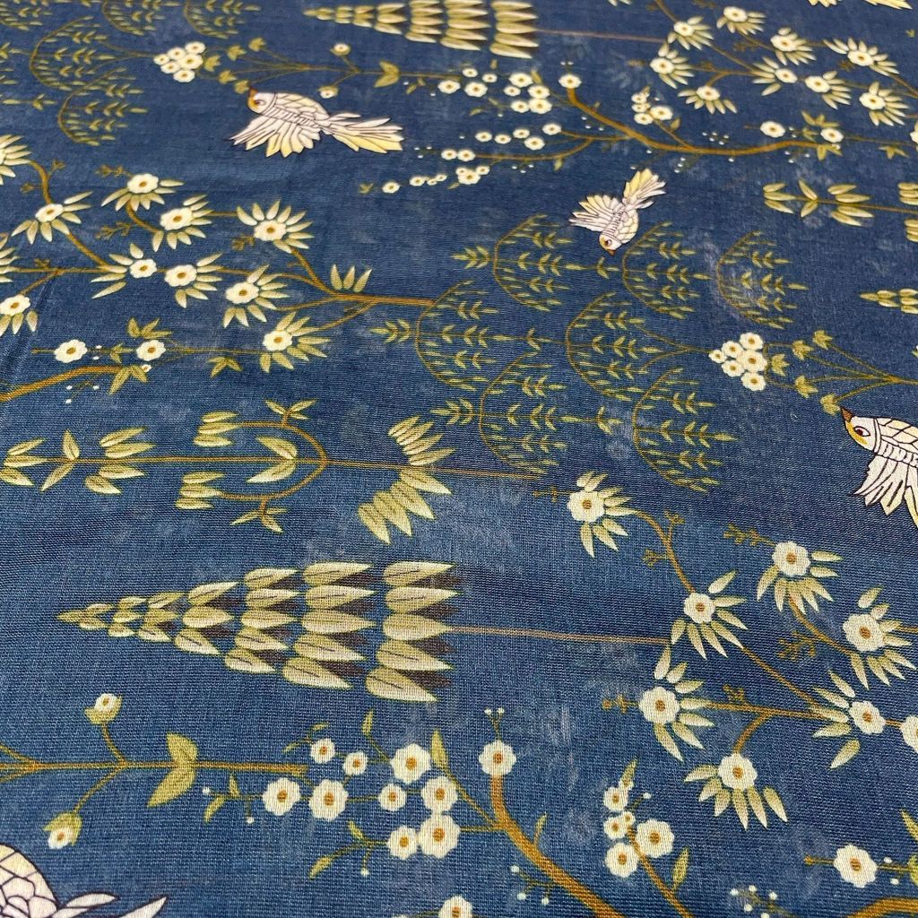 | Fabric Name | Navy Blue Color Pure Chanderi Silk Printed Fabric |