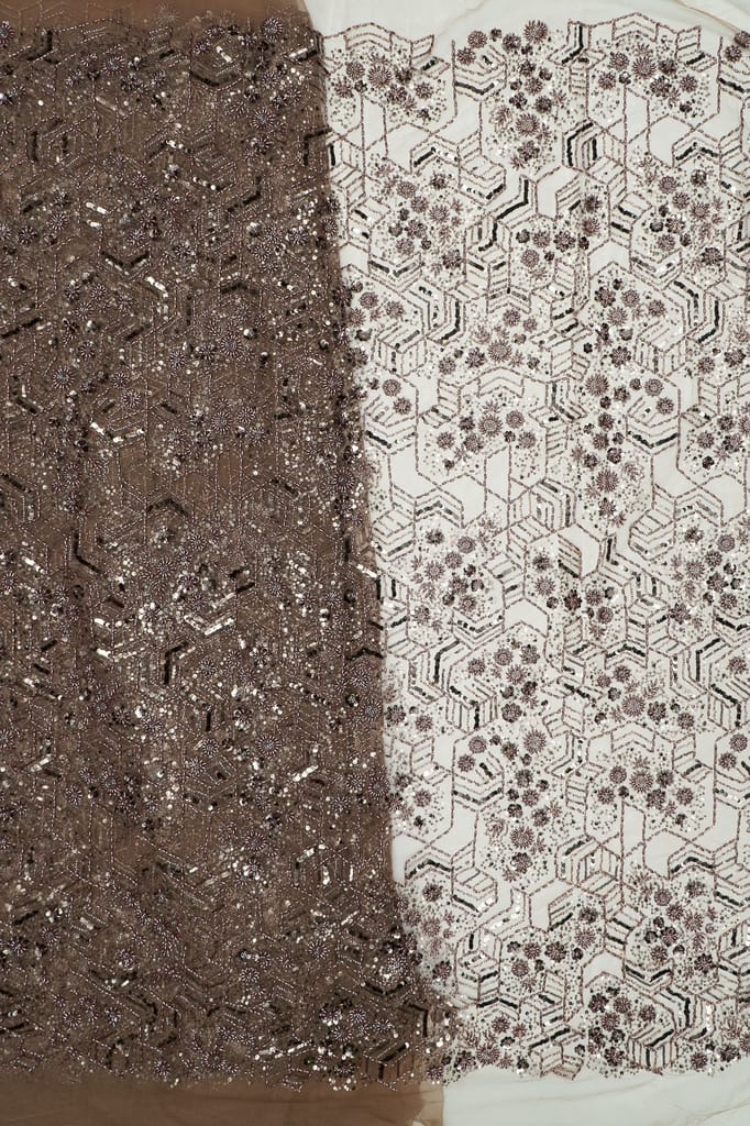 | Fabric Name | Brown Color Net Hand Embroidered Fabric |