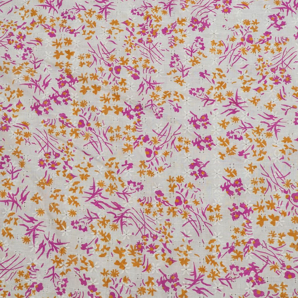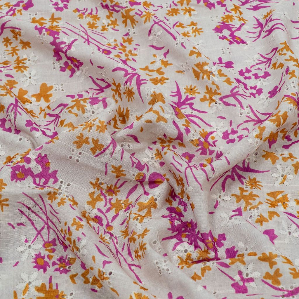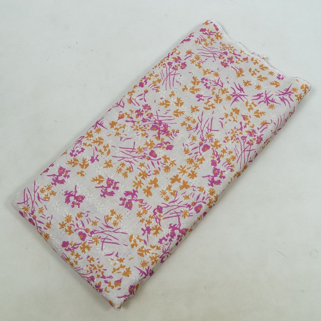 Bring a touch of springtime freshness to your collection with our Cotton Schiffli Digital Printed Fabric. Crafted from soft, breathable cotton featuring intricate Schiffli embroidery, this fabric showcases a delicate texture enhanced by vibrant digital floral prints. The harmonious blend of soft pastel hues and detailed floral motifs makes it ideal for creating refreshing casual wear, stylish kurtas, dresses, tunics, skirts, and more. Perfect for designers and boutique collections, this fabric promises comfort, versatility, and effortless sophistication, suitable for both everyday wear and special occasions.