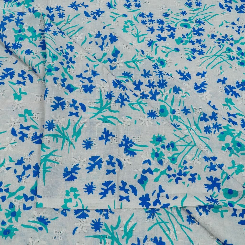 Bring a touch of springtime freshness to your collection with our Cotton Schiffli Digital Printed Fabric. Crafted from soft, breathable cotton featuring intricate Schiffli embroidery, this fabric showcases a delicate texture enhanced by vibrant digital floral prints. The harmonious blend of soft pastel hues and detailed floral motifs makes it ideal for creating refreshing casual wear, stylish kurtas, dresses, tunics, skirts, and more. Perfect for designers and boutique collections, this fabric promises comfort, versatility, and effortless sophistication, suitable for both everyday wear and special occasions.