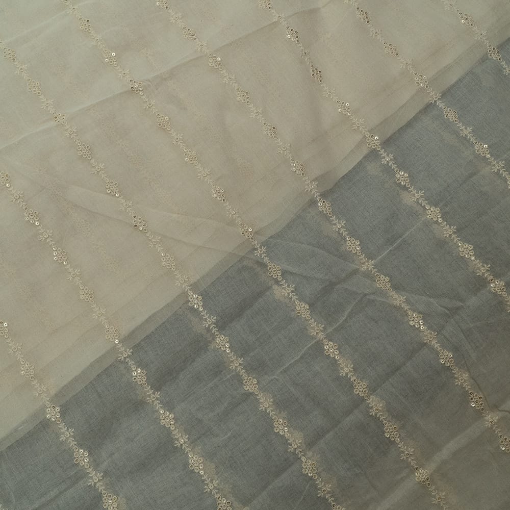 This fabric is from FabCouture Cotton Embroideries and the base is pure, soft, breathable cotton and the embroidery is in cream colour thread which gives it a nice summer appeal. It Is good for kurtas, trousers and summer dresses. SKU: 100233500