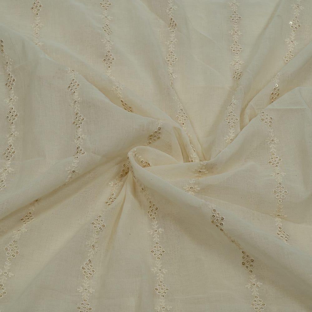 | Fabric Name | Off White Color Dyeable Mal Cotton Embroidered Fabric |