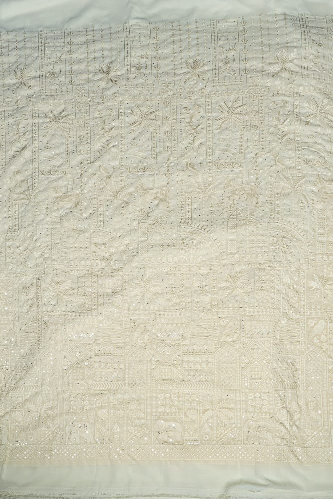 • Technique: Intricate embroidery featuring a blend of fine threadwork and sequins on georgette