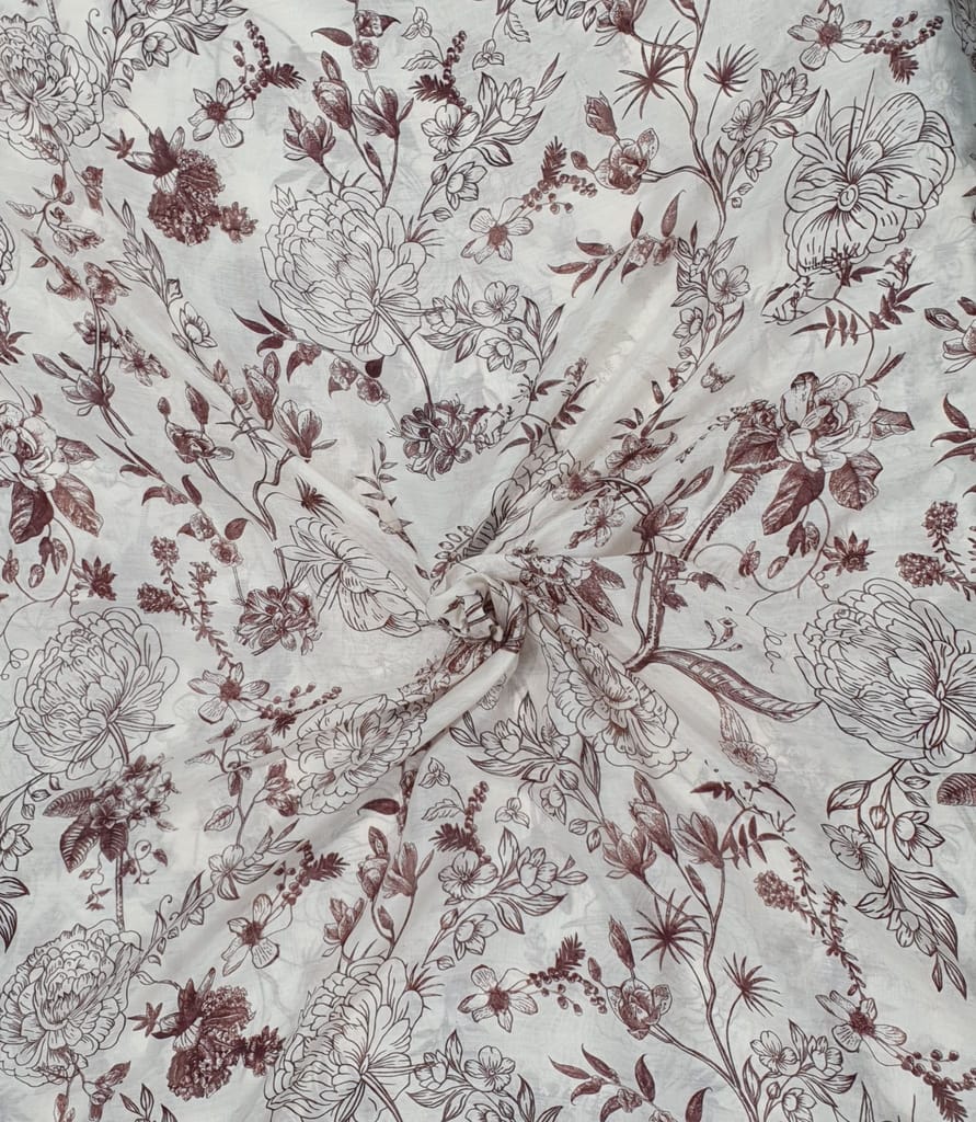 Mal Chanderi Silk Printed fabric is a blend of silk and cotton, known for its lightweight, sheer texture and glossy finish. The fabric features intricate printed designs, adding a modern touch to its traditional appeal. Often used for ethnic wear, such as sarees, suits, and scarves, Mal Chanderi Silk is luxurious, breathable, and perfect for creating elegant, sophisticated styles with a timeless charm.SKU; 8025071803