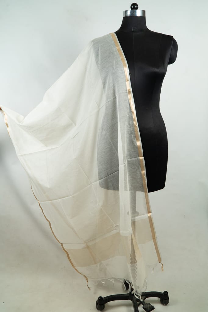 Off White Dyeable Chanderi Dupatta with Golden Border – Elegant & Versatile
