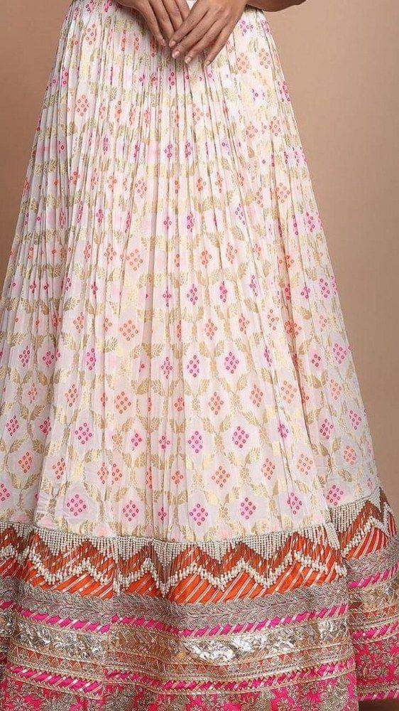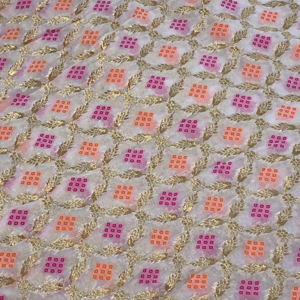 Dyeable georgette jacquard in geometric pattern with pop colour detailing is an excellent fabric for lehengas, shararas and sarees as well. SKU: 100204404