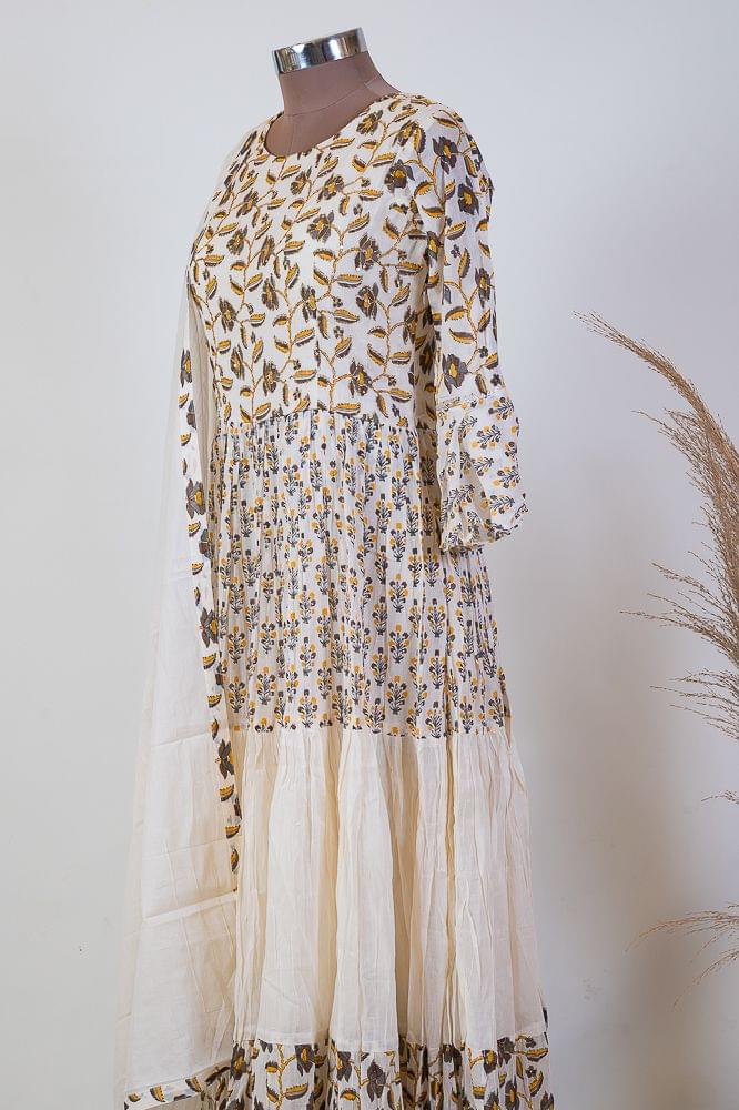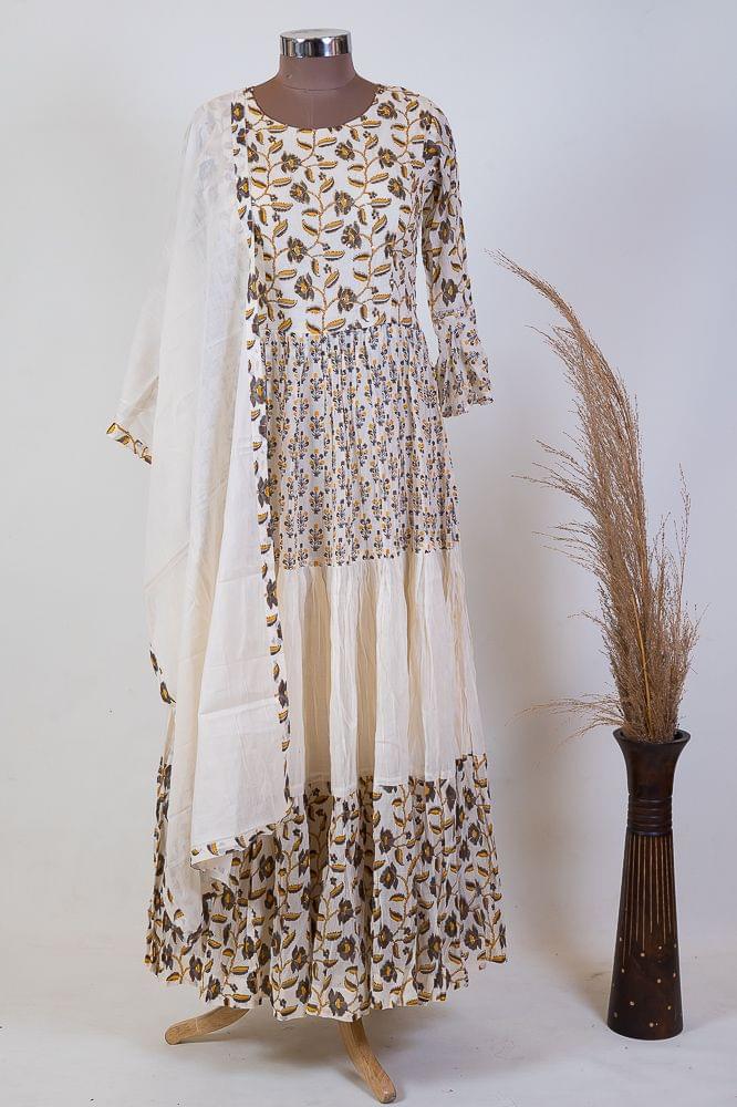 | Fabric Name | Off White Printed cotton Shirt with Mal Cotton Dupatta |