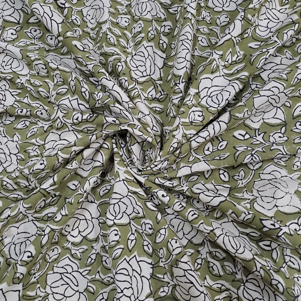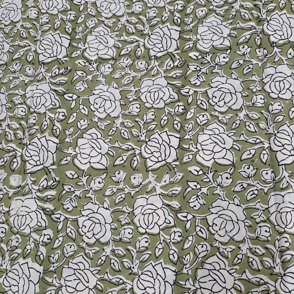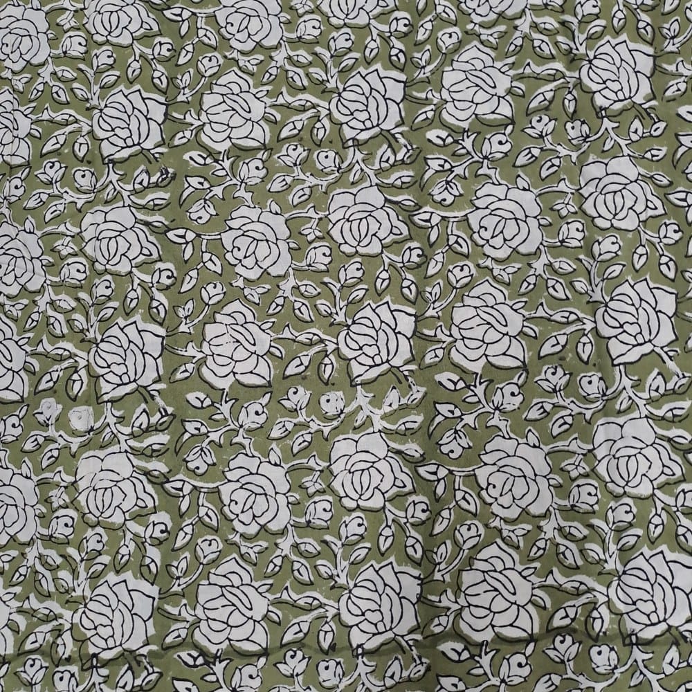 | Fabric Name | Olive Color Cambric Cotton Bagru Printed Fabric |